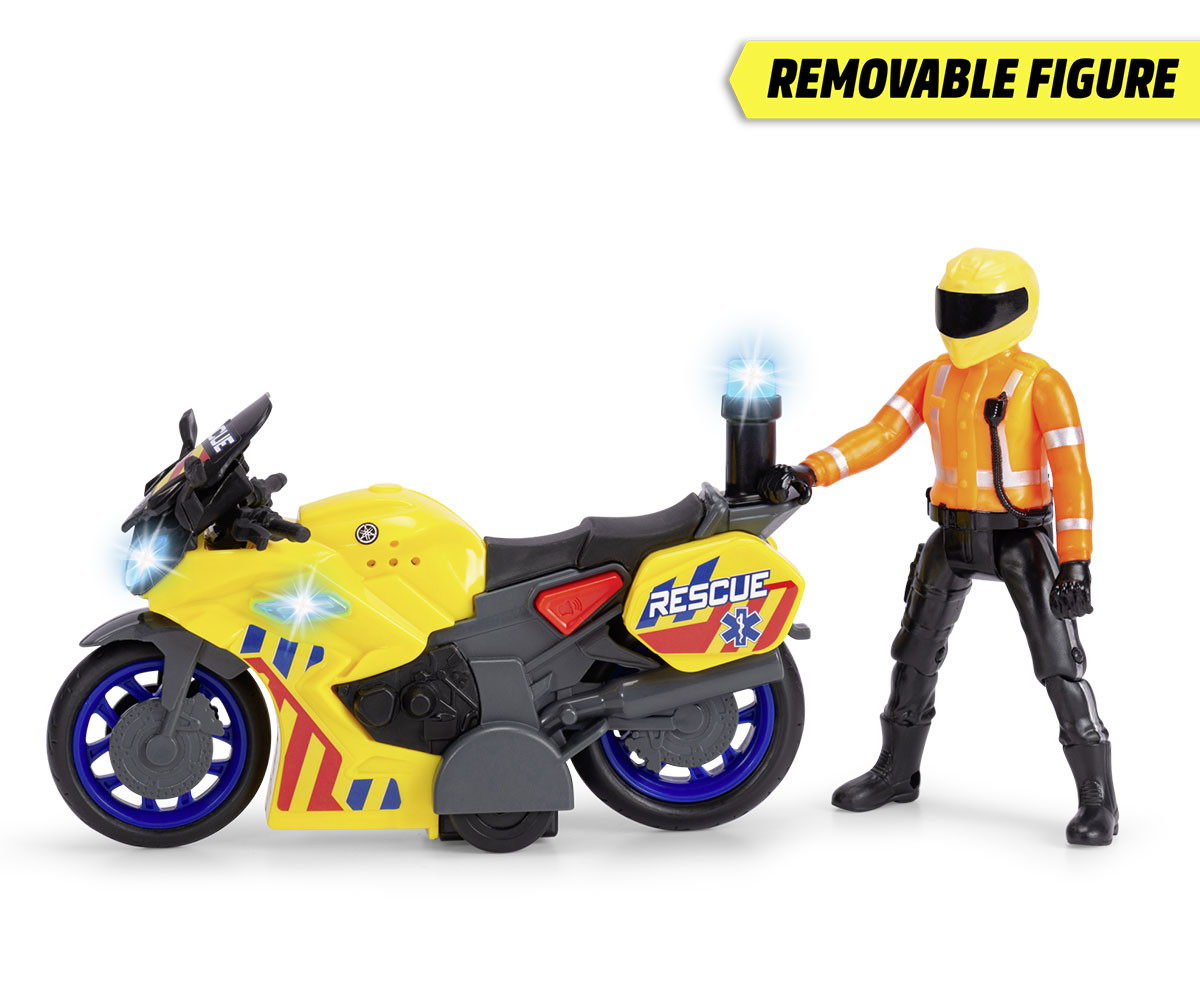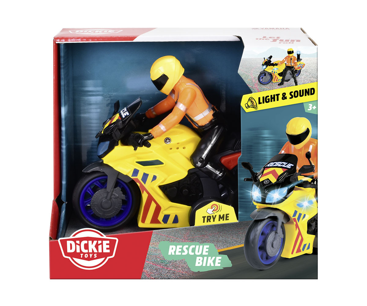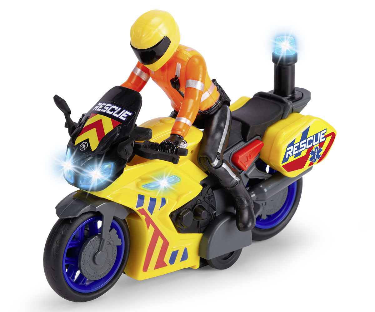 Ямаха спасително превозно средство с фрикционно задвижване и премахваща се фигура на водач, играчка мотор за деца над 3 години със светлини и звук - включени батерии.