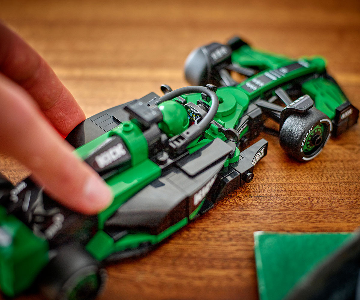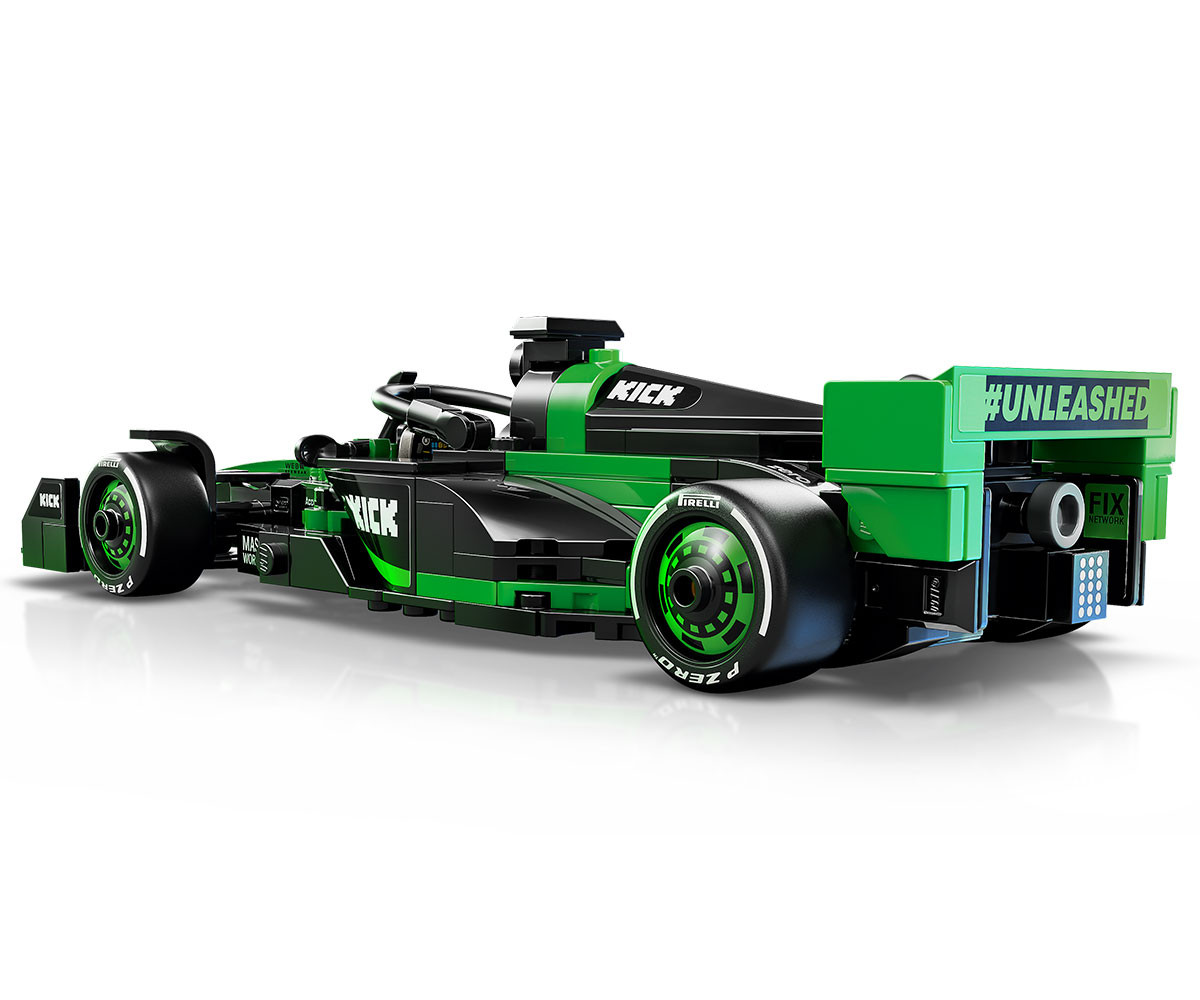 - Автентични детайли на KICK Sauber F1® Team – модел на кола от F1 с детайли от реалната версия от 2024 г., включваща задно крило, спонсорски стикери и по-широки гуми с надпис „Pirelli“;