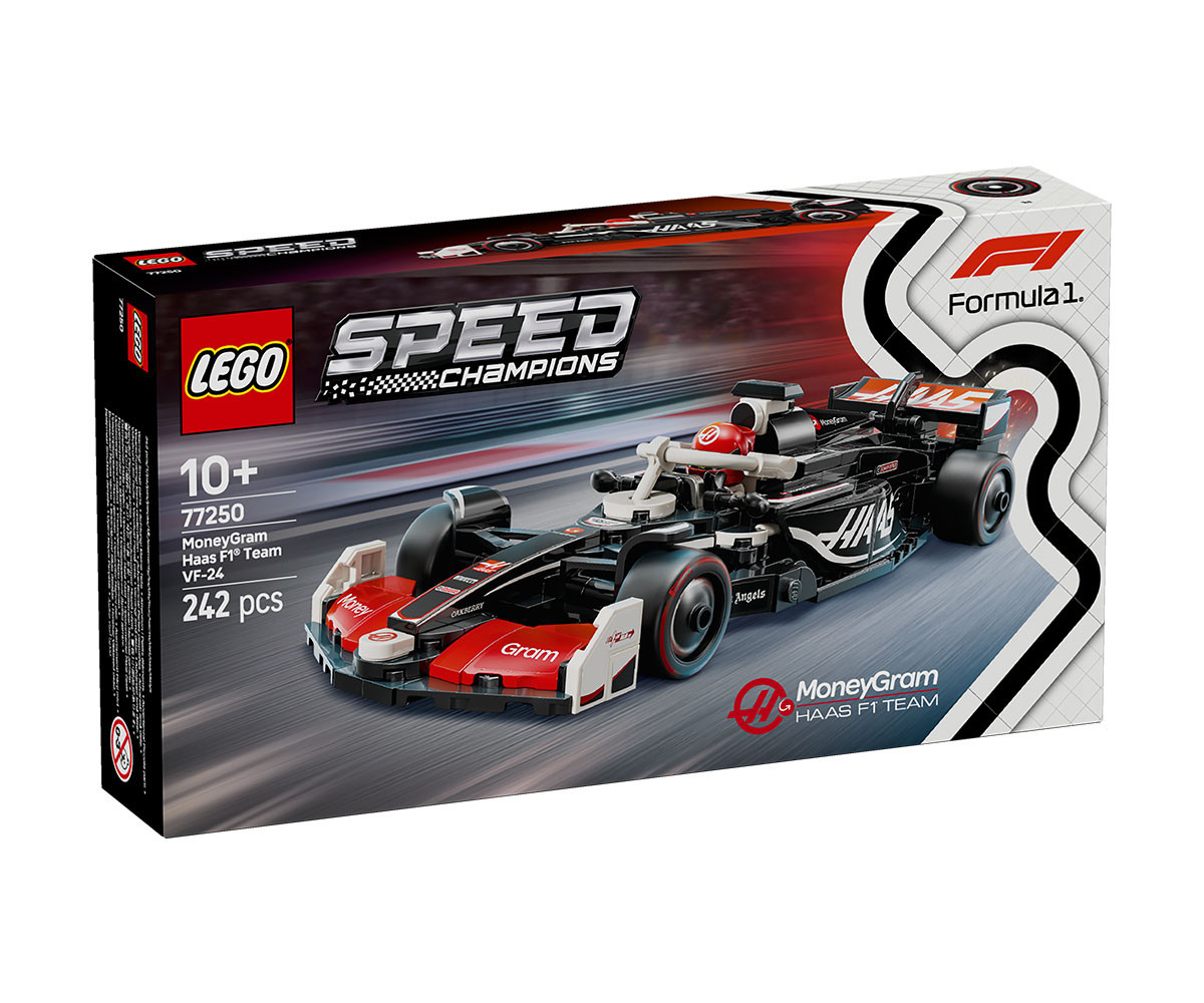 Момчета и момичета на възраст над 10 години могат да се потопят във вълнението на Formula 1® с LEGO® Speed Champions Болид MoneyGram Haas F1® Team VF-24 (77250). Деца и възрастни колекционери на коли могат да конструират, да показват и да разиграват състезания с модел на болид от F1, който включва детайли от дизайна на реалната версия, състезавала се във Формула 1 през 2024 г. Моделът на кола от F1 има кабина, която се отваря чрез повдигане на ореола, задно крило, окачване с носачи, спонсорски стикери и по-широки задни гуми с надпис „Pirelli“. Болидът от F1 се предлага с минифигура на пилот в екипировка на MoneyGram Haas F1 Team и „крилат“ шлем, която да се постави в кабината. С комплектите LEGO Speed Champions децата и феновете на състезанията конструират модели на някои от най-емблематичните превозни средства в света, включително други коли от Формула 1 (продават се отделно) от шампионатния сезон 2024. Всеки комплект с кола може да бъде създаден с помощта на печатни инструкции за построяване или приложението LEGO Builder, което насочва вас и вашето дете по време на весело строително приключение.