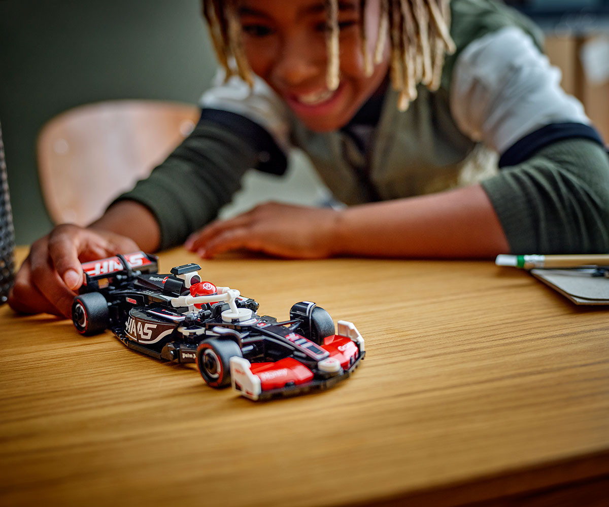 Фенове на F1® и деца над 10 години могат да строят, да показват и да се състезават с играчката LEGO® Speed Champions Болид MoneyGram Haas F1 Team VF-24.