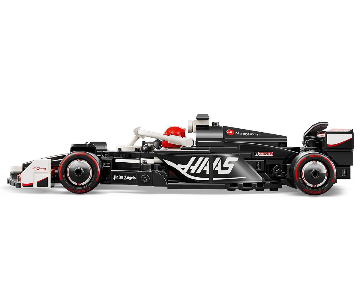 - Автентични детайли на MoneyGram Haas F1® Team – модел на кола от F1 с детайли от реалната версия от 2024 г., включваща ореол, задно крило, спонсорски стикери и по-широки гуми с надпис „Pirelli“;