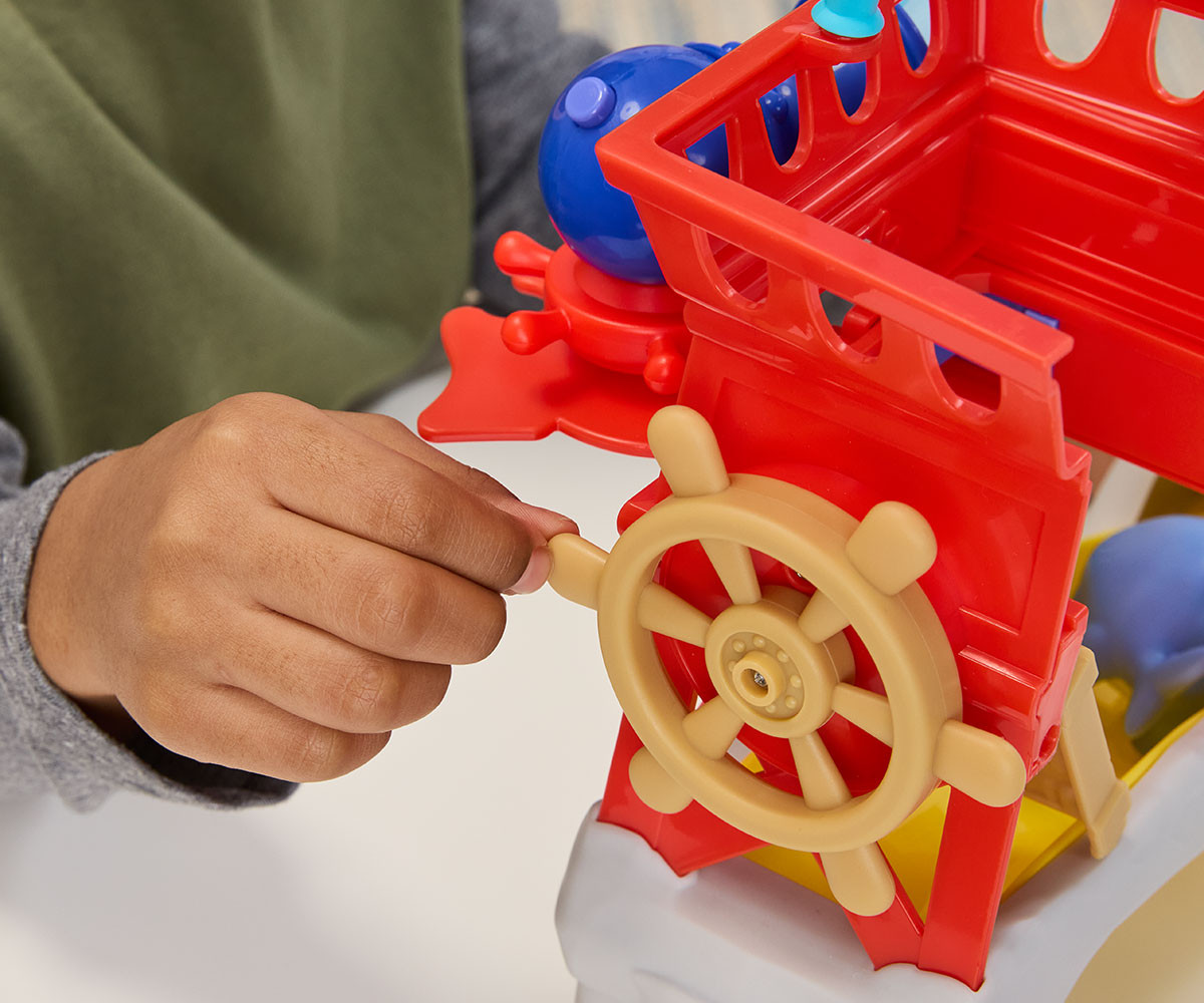 Преобрази Спайди в Пират Спайди с помощта на включените аксесоари – пиратска шапка, ботуши и кука, които се поставят и свалят лесно. В комплекта ще намериш и подвижна палма, пиратско знаме и оръдие с паяжина, което фигурката може да държи със специалната си „хватка“! Този комплект стимулира въображението и е подходящ за момчета и момичета над 3 години. Съчетай с още играчки от поредицата Spidey and His Amazing Friends – фигури, превозни средства и плейсети за още по-забавно изживяване. Готините Marvel играчки са страхотен подарък за рождени дни, празници и всякакви специални поводи!