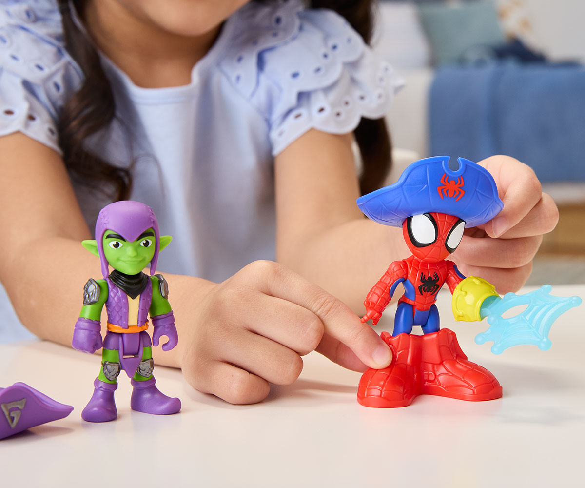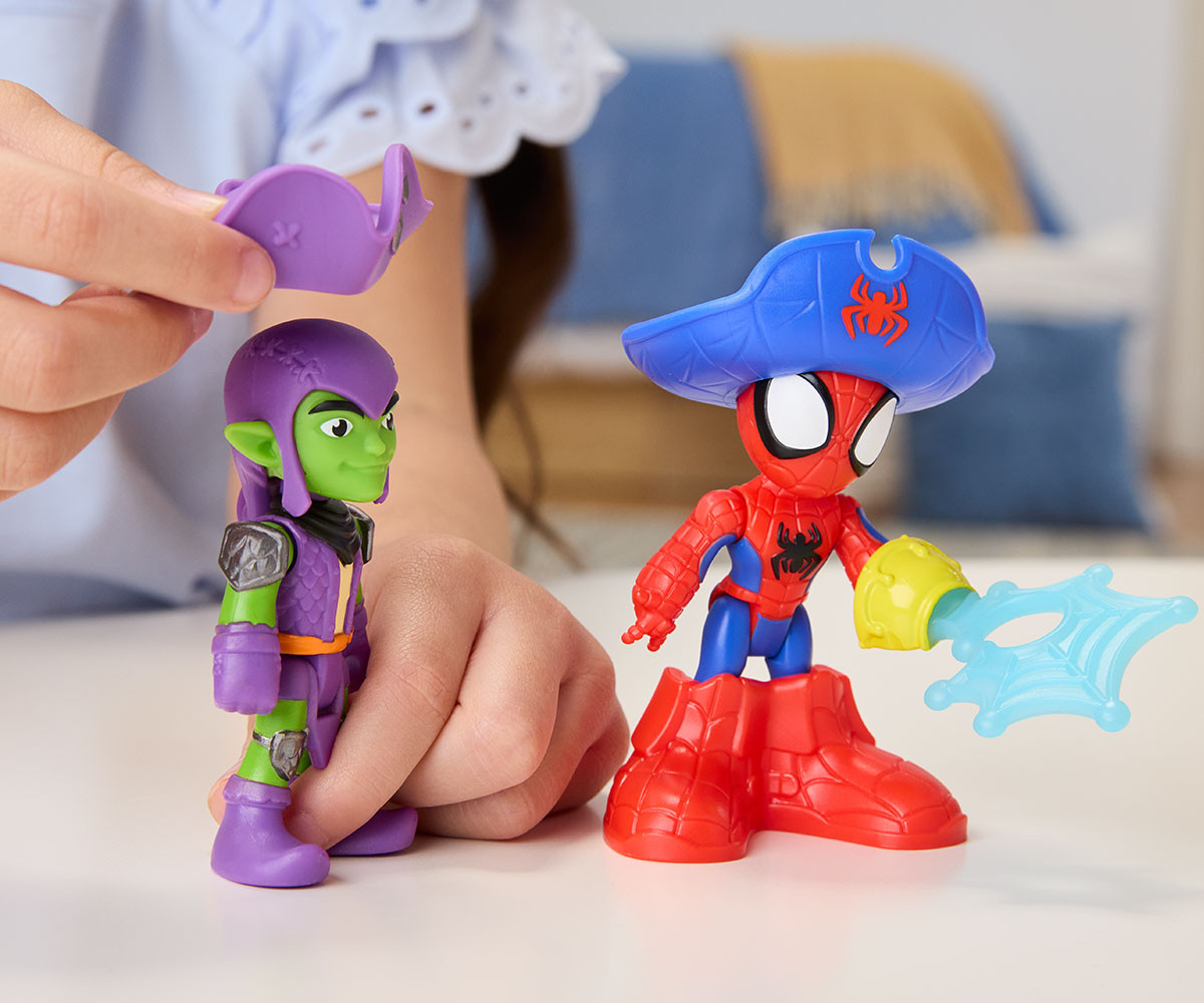 - Фигурки – включени са 2 подвижни фигурки (7.6 см): Spidey и Green Goblin, всяка с отделящи се аксесоари;