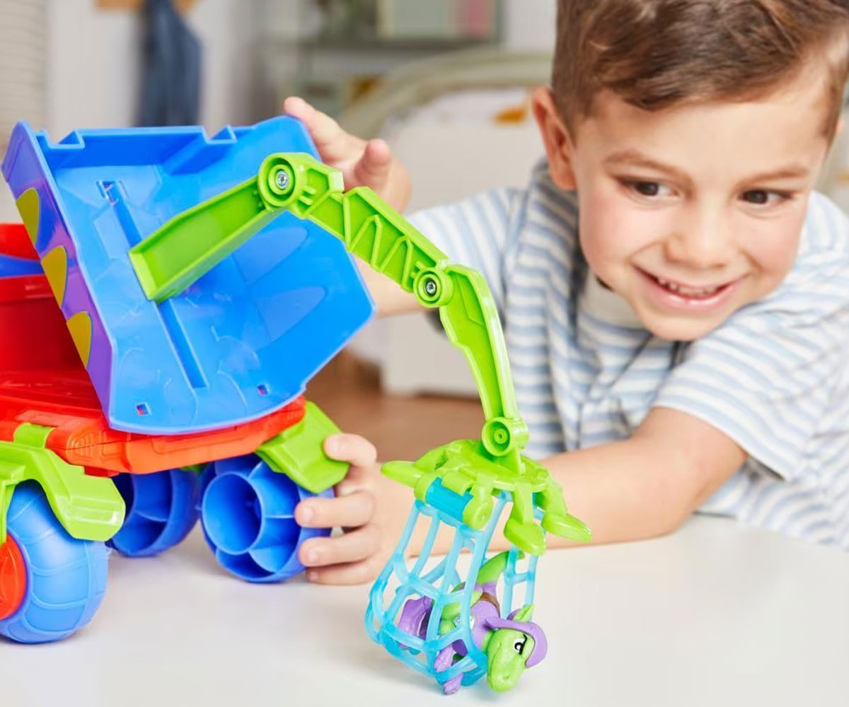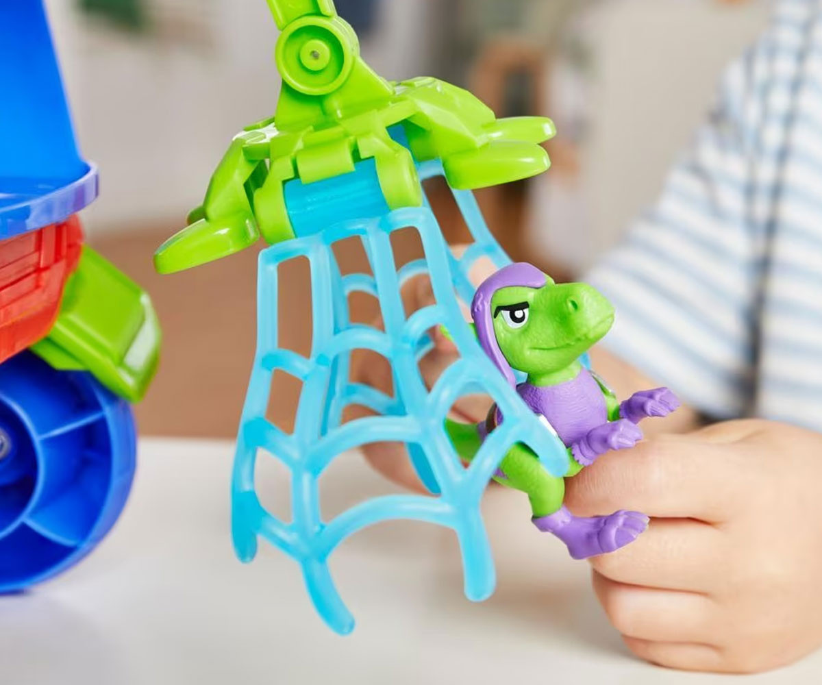 Гмурнете се в динозавърски екшън със Спайди и неговите невероятни приятели: Пълзящо превозно средство Дино от Marvel! Пригответе се за страхотно забавление с този супер комплект за момичета и момчета, който съчетава динозавърски приключения и любими супергерои! С огромно превозно средство, отваряща се уста на динозавър, подвижен кран със захващаща щипка, прибиращи се колела и накланяща се каросерия – всичко е готово за спасителни мисии и зрелищни сблъсъци! Комплектът включва 10 см фигура на Спайди в дино костюм и 6 см фигурка на страховития Гоблин Раптор – перфектната комбинация за приключения, вдъхновени от хитовото шоу на Disney Junior! Малките супергерои (на 3+ години) ще обожават да се впускат в битки, да спасяват деня и да си представят всякакви истории с любимите си герои от вселената на Marvel!