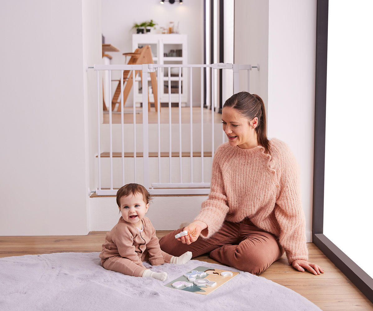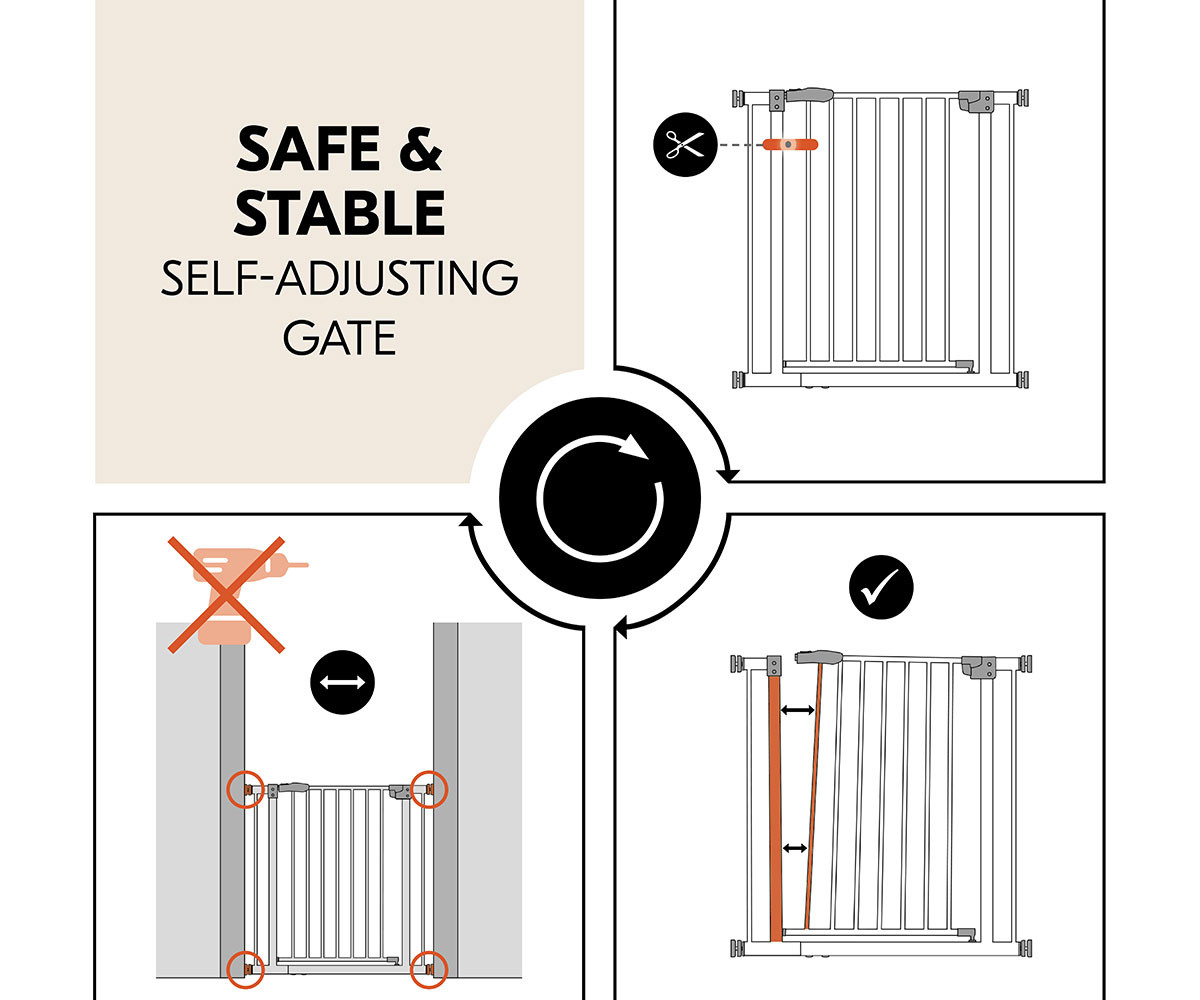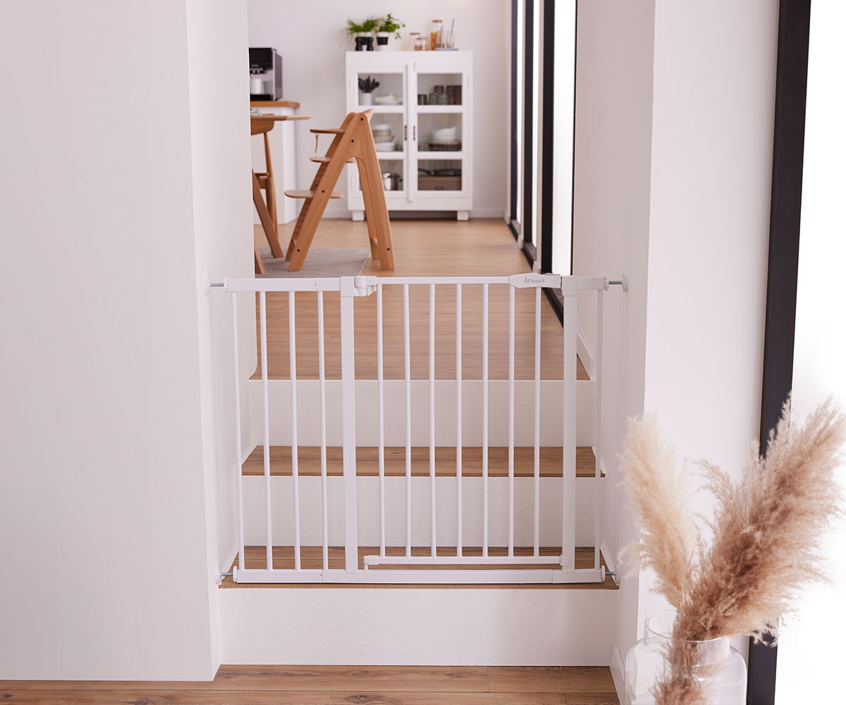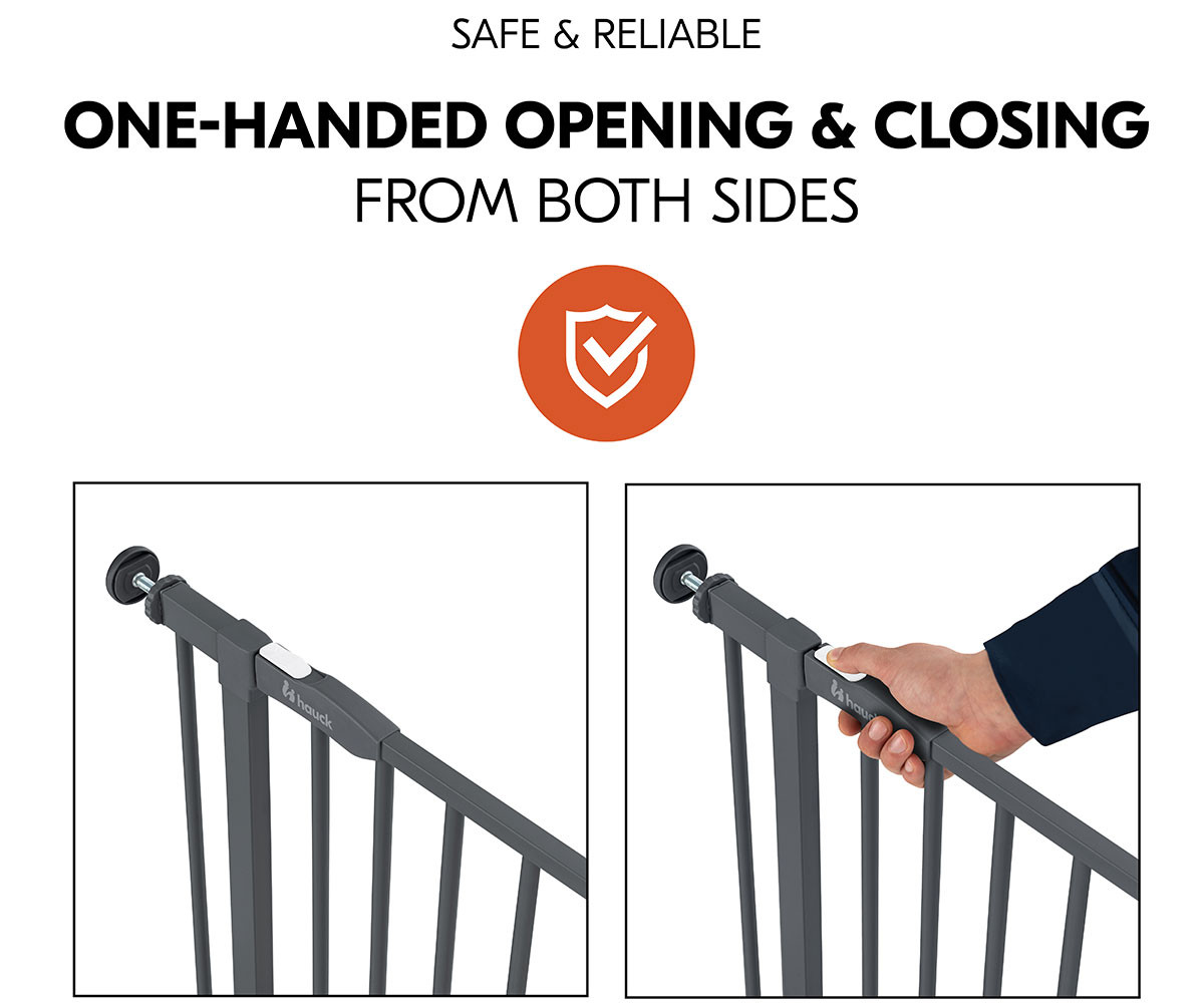 Практична, ръчно заключваща се преграда за врати и стълби. Щом детето ви започне да се движи, преградите за стълбища и врати са незаменими и помагат да запазите бебето си в безопасност. Независимо дали сте у дома, при баба и дядо или на почивка, вратата с клипс е здраво прикрепена с регулиращи винтове чрез натиск и може да бъде премахната без да оставя следи. Преградата може да се отваря с една ръка от двете страни и е лесна за затваряне. Open N Stop 2 е подходяща не само за отвори със стандартна ширина от 75–80 см, но може да бъде удължена до 122 см с помощта на отделно наличните удължения от 9 см и 21 см (можете да ги закупите тук).