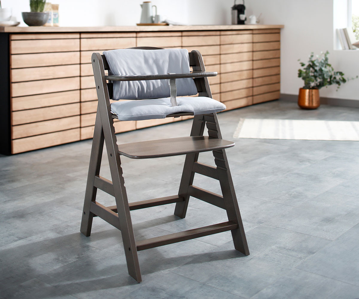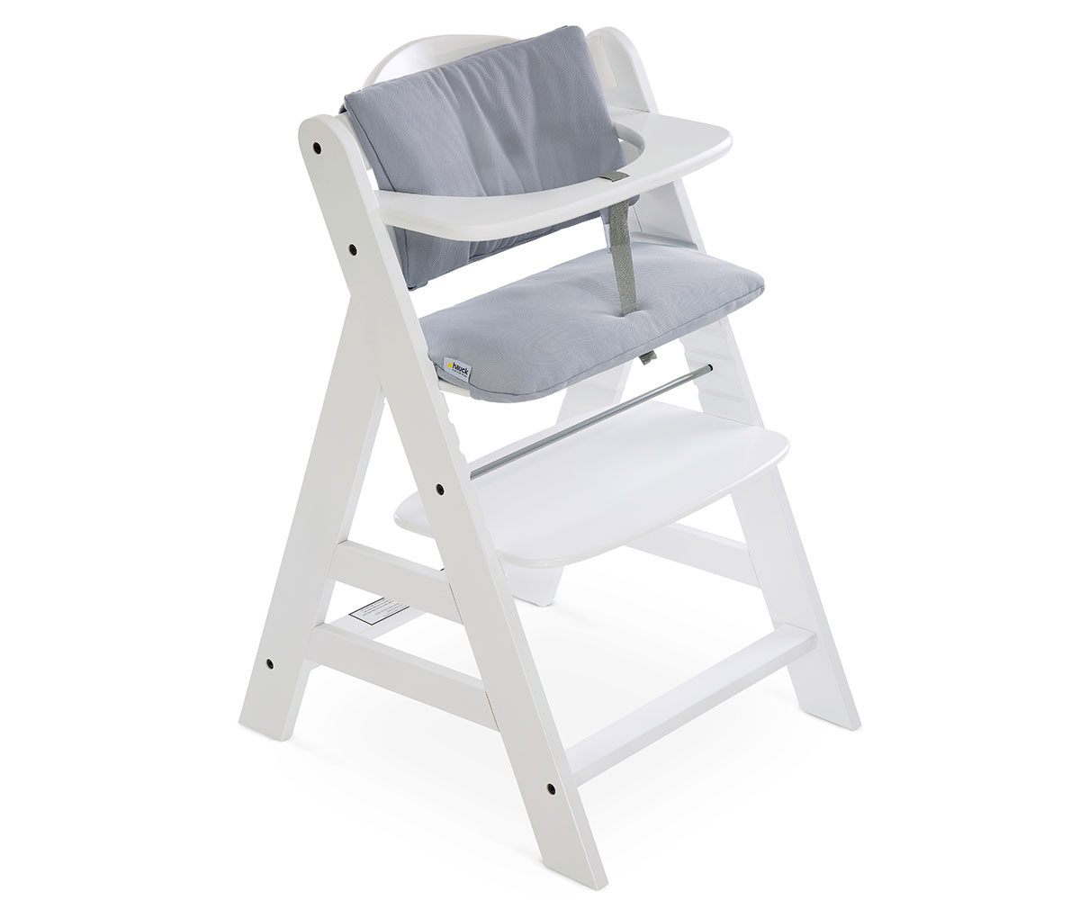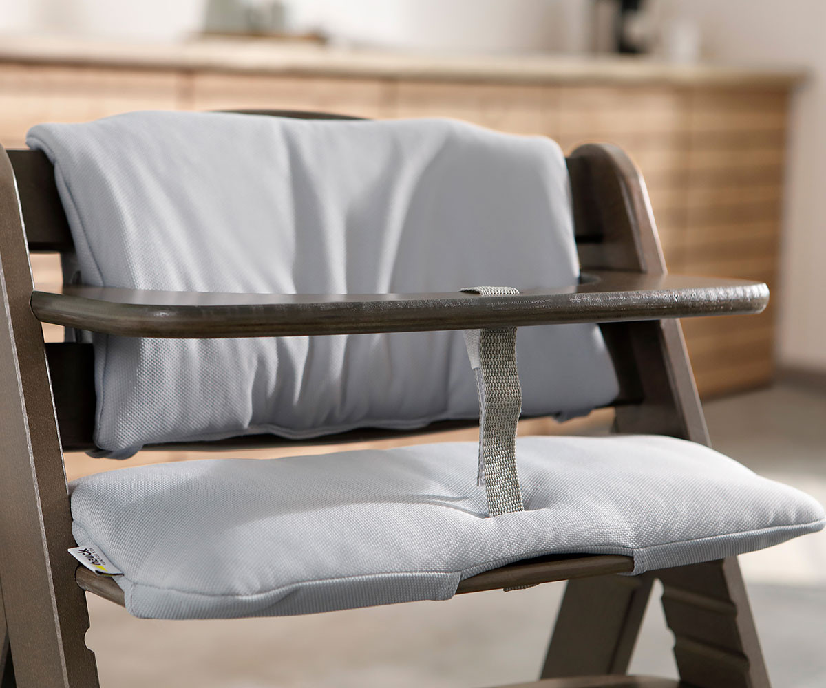 Търсите удобен комплект подложки за стола за хранене на вашето малко дете? Highchair Pad Deluxe пасва идеално на дървените столове за хранене hauck Alpha+, Beta+ и Arketa. Тапицерията омекотява облегалката и седалката на стола, а тъканта е мека и удобна. Ще знаете, че на детето ви му е винаги удобно. Просто, бързо и удобно: Highchair Pad Deluxe е лесен за поставяне на стола за хранене, като се използва велкро закопчалка. Дървените столове за хранене на hauck са оборудвани с лента за крачето и 5-точков колан. Можете да използвате и двете с тапицерията за седалка. Вашето бебе е добре закрепено на всяка възраст.