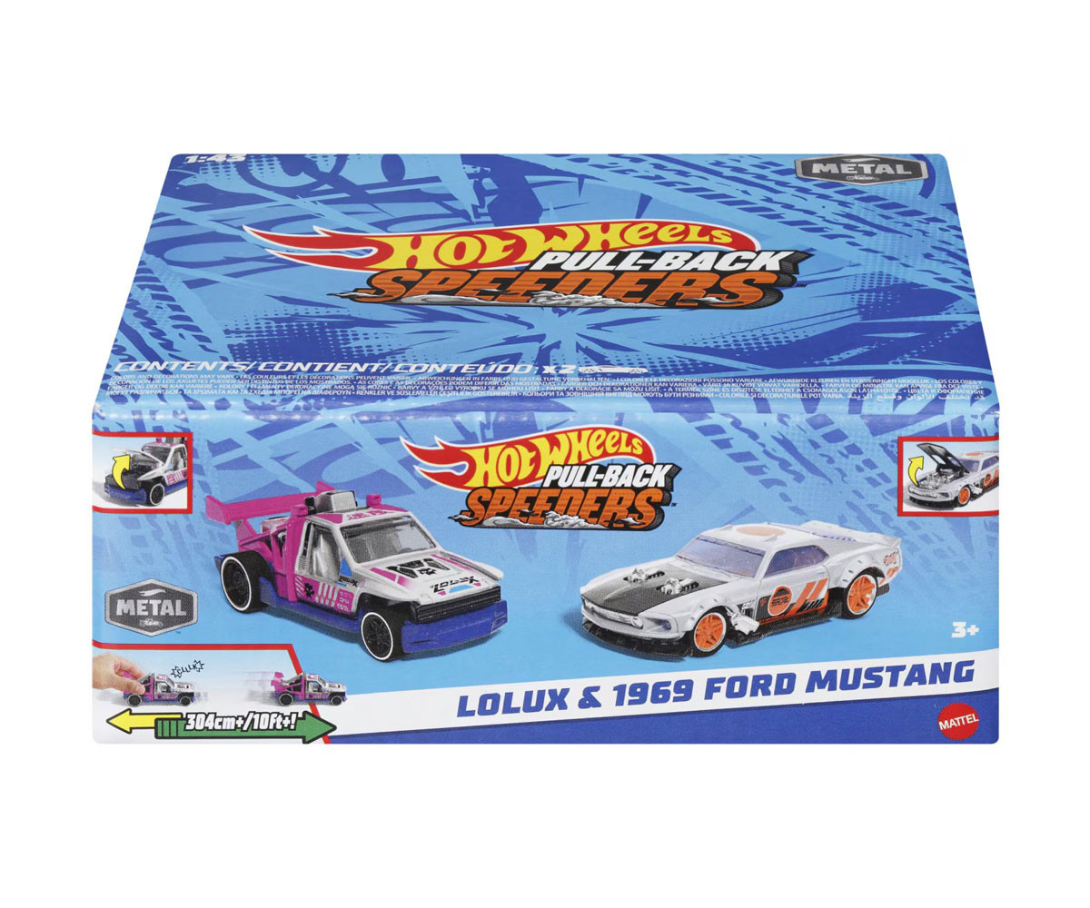 Пригответе се за състезание с Hot Wheels Pull-Back Speeders комплект от 2! Тези по-големи метални коли Hot Wheels са в мащаб 1:43 с автентичен дизайн. Всяко превозно средство включва интерактивна функция, като например такава, която подчертава работещия двигател или отварянето на вратите, капака или багажника. С такъв модерен дизайн екшън историите са безкрайни и децата и колекционерите ще искат да ги съберат всички! Всеки комплект се продава отделно в зависимост от наличността. Цветовете и дизайните могат да варират.