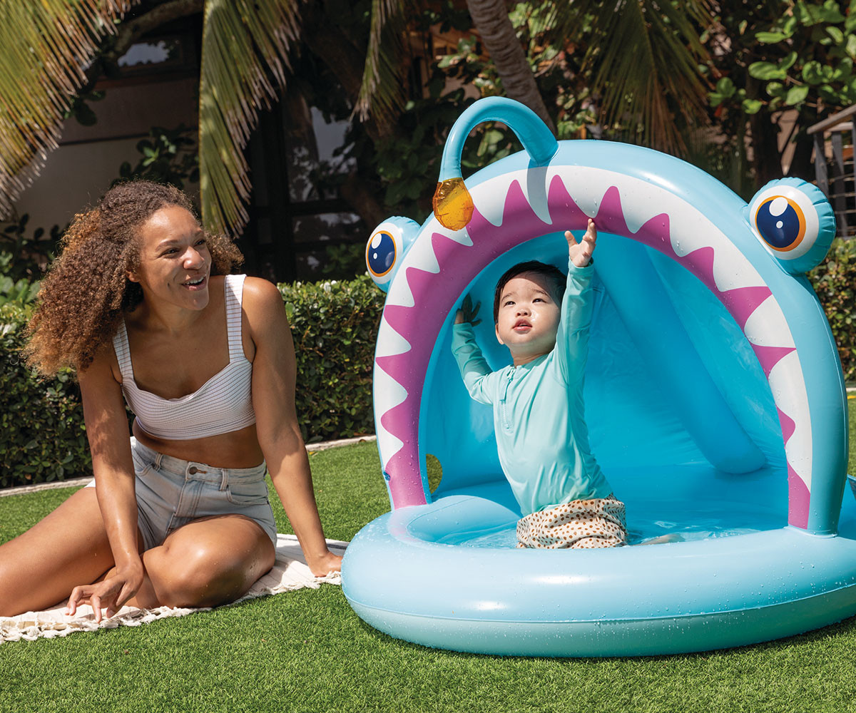 INTEX - Бебешки надуваем басейн със сенник Риба, 127 х 102 х 86 см