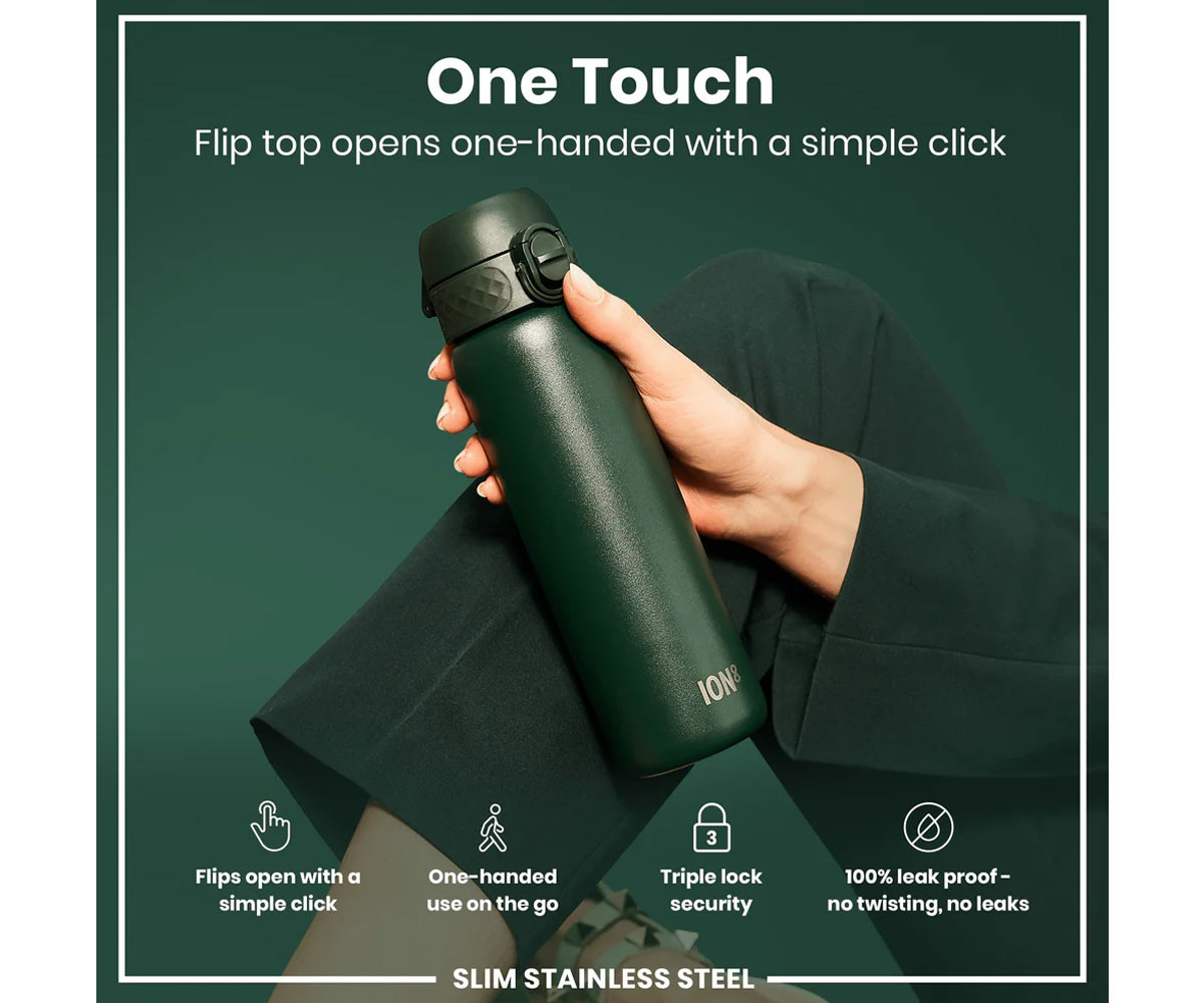 Бутилката за вода от метал ION8 е 100% херметична и устойчива на течове. Веднъж затворен, мекият силикон напълно затваря мундщука и вентилационния отвор. Предпазно заключване предотвратява случайно отваряне при носене в чанта или раница. Работа с една ръка. Можете да отворите капака, предпазващ мундщука, с един пръст докато сте на велосипед, скутер или в кола. Тези продукти ION8 са за многократна употреба, без мирис, безопасни и без BPA. Тяхната мисия е да проектират и доставят желани продукти за многократна употреба, като по този начин вдъхновяват ефектно намаляване на отпадъците чрез широкото им приемане. Намалете пластмасата за еднократна употреба, намалете отпадъците и помогнете на тази малка бутилка да промени света.