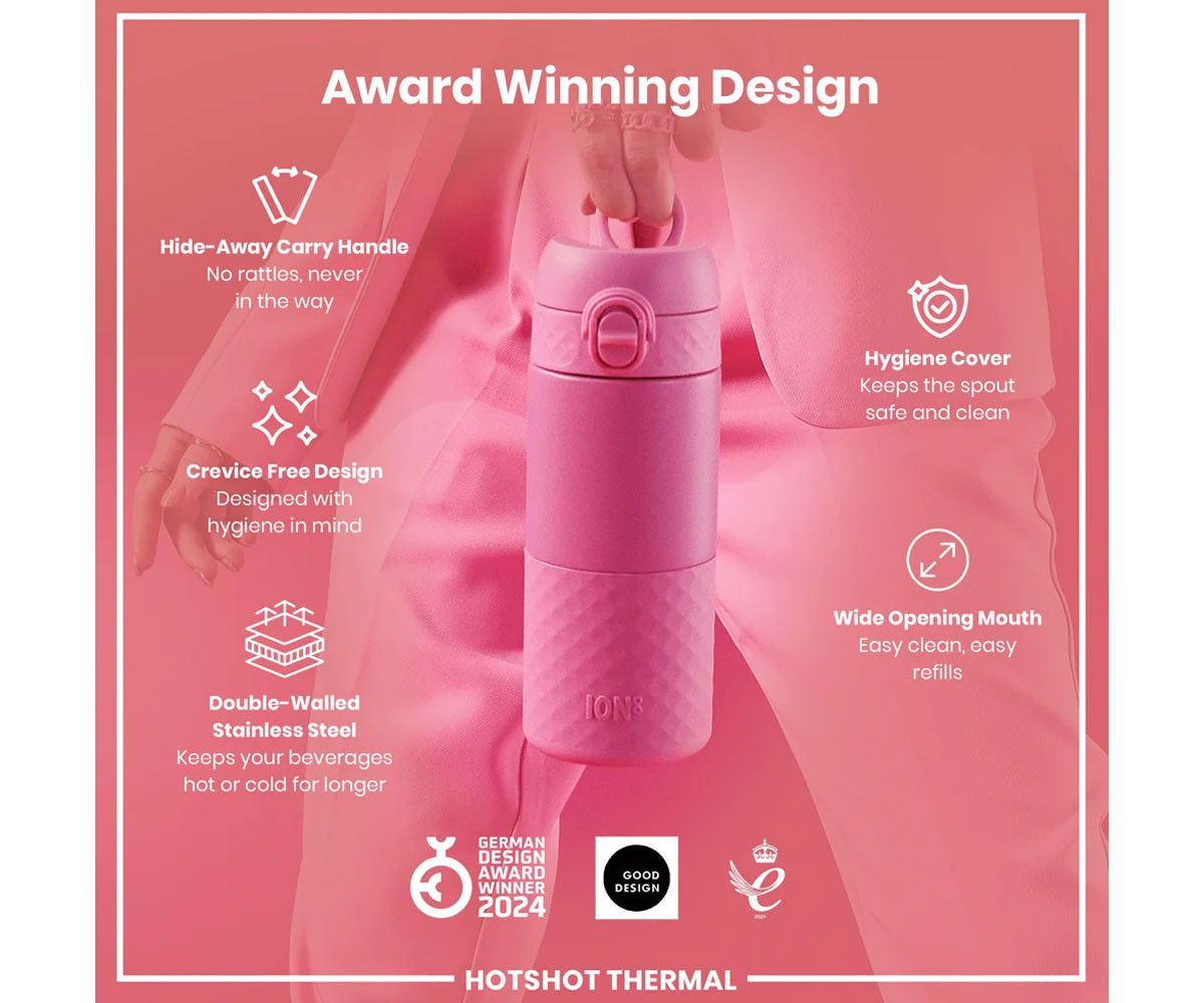 - Име: Метална термо чаша Ion8, 360 мл, розова