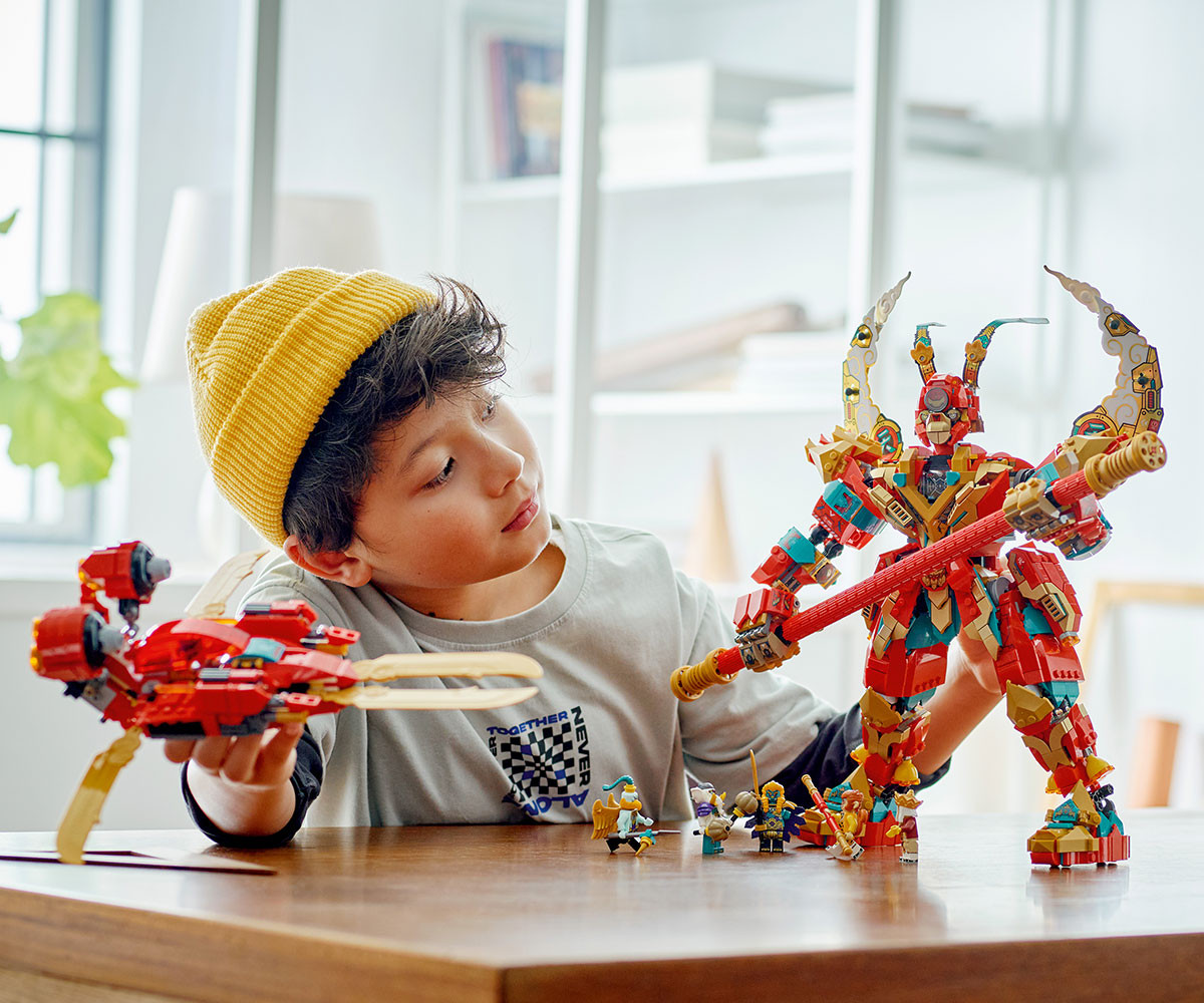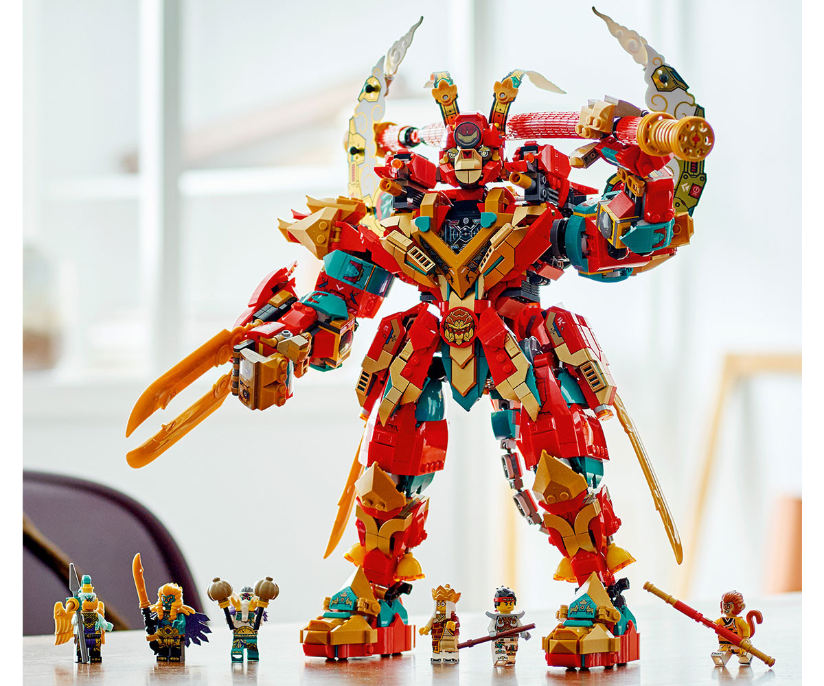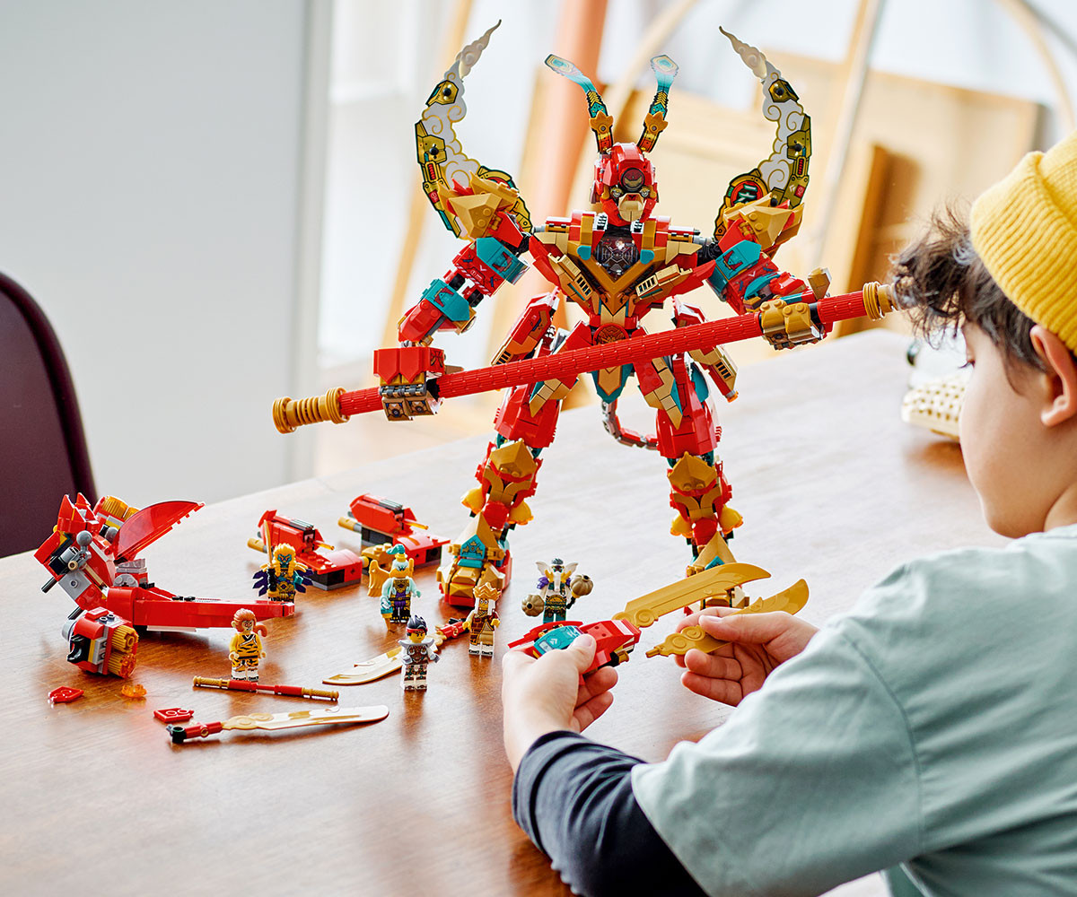 - Приключението продължава: Комплектът има 6 минифигури: Monkey King, версия с добавки на Monkie Kid, Yellow Tusk Elephant, Azure Lion, The Golden-Winged Eagle и оригиналната версия на Mr. Tang. Децата могат също така да се наслаждават на лесно и интуитивно строително приключение с приложението LEGO Builder. С него децата могат да мащабират и завъртат 3D моделите, да записват комплекти и да проследяват напредъка си.