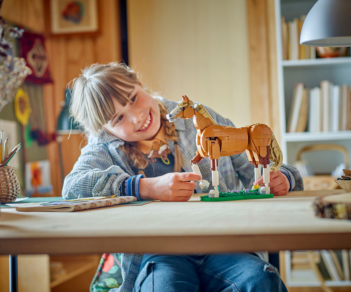 Любителите на животните могат да разиграят забавни истории с комплекта LEGO® Creator Красив кон „3 в 1“, а после да го променят в елен или мечка.