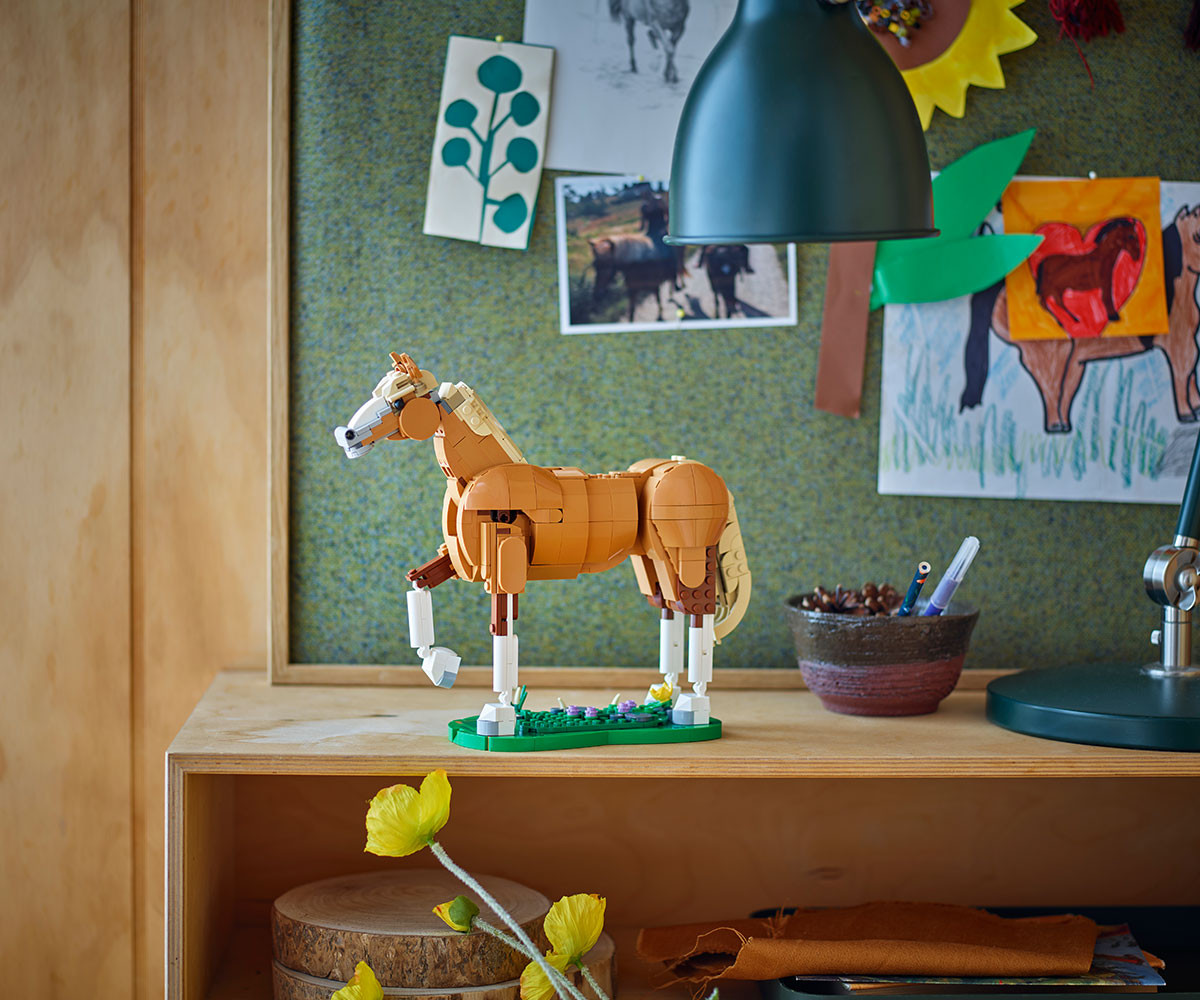 - Три великолепни животни за построяване в една кутия – строителният комплект LEGO® Creator Красив кон позволява на деца на възраст над 9 години да създадат три различни фигури на животни с едни и същи тухлички;