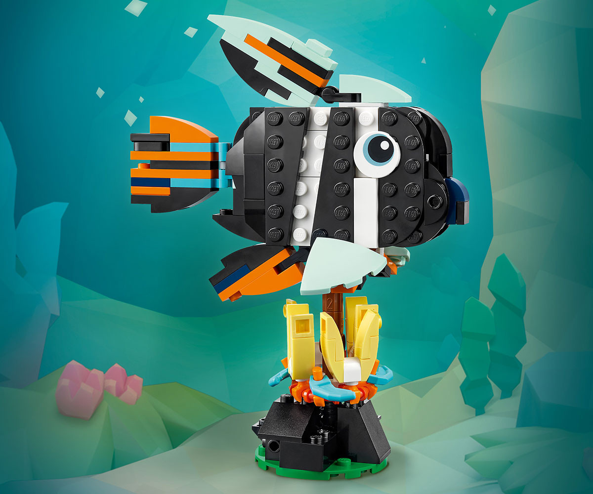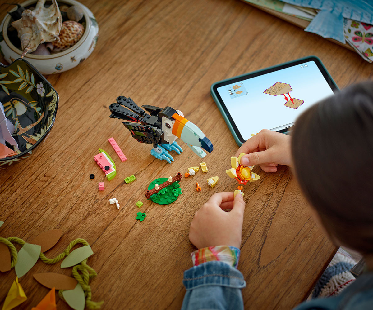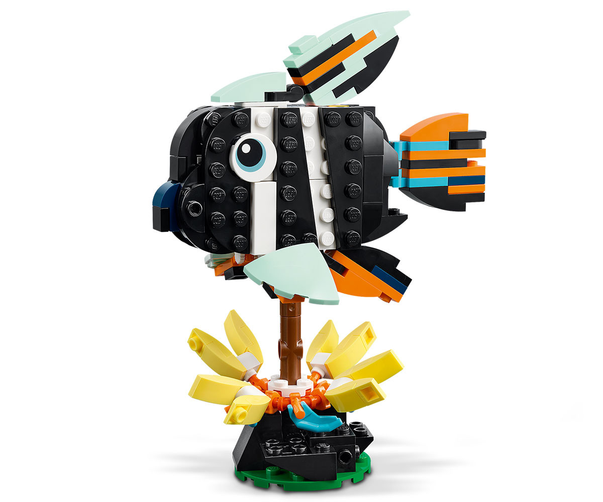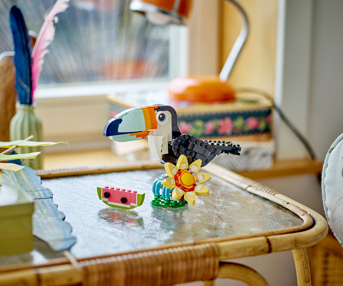 Децата могат да посетят тропиците с комплекта LEGO® Creator Диви животни: Тропически тукан „3 в 1“, а после да го променят в пеперуда или риба.