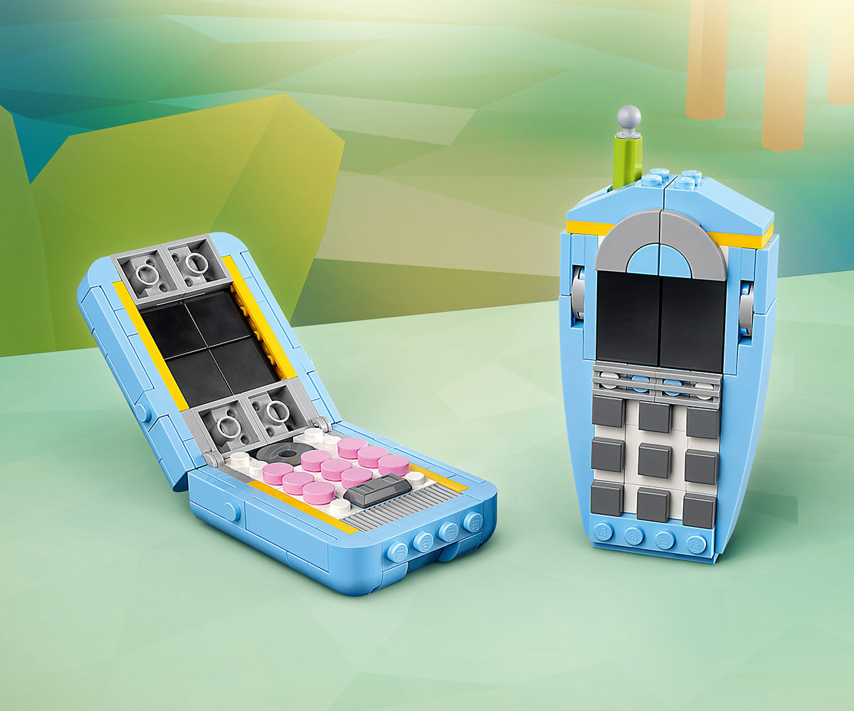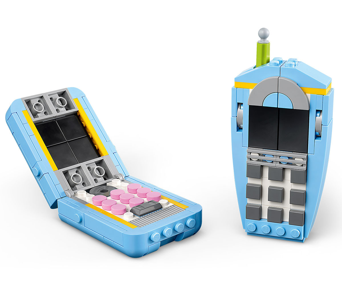 Върнете се назад във времето със забавен и цветен комплект за игра LEGO® Creator Ретротелефон. Вдигнете слушалката, преместете кабела, завъртете шайбата и се обадете с този стилен телефон от 60-те години на миналия век. Престройте го в телефон от 80-те години с големи бутони и зарядна станция или в 2 малки телефона от десетилетието на 2000 г. Какво ще построите? Изборът е ваш с този стилен комплект „3 в 1“.