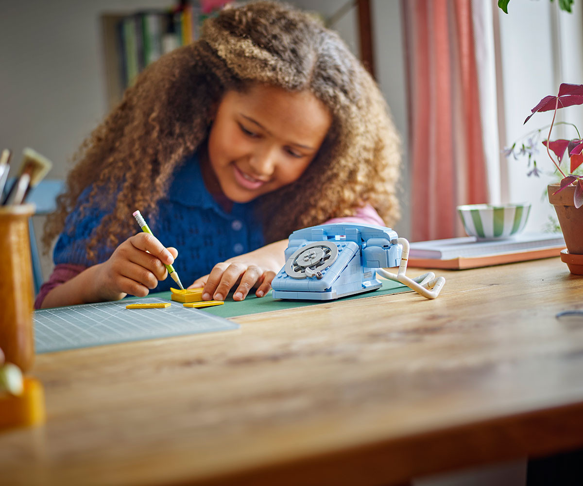 Децата могат да показват и играят с този LEGO® Creator Ретротелефон от 60-те години, след което да го променят в един телефон от 80-те или в два от десетилетието на 2000 г.