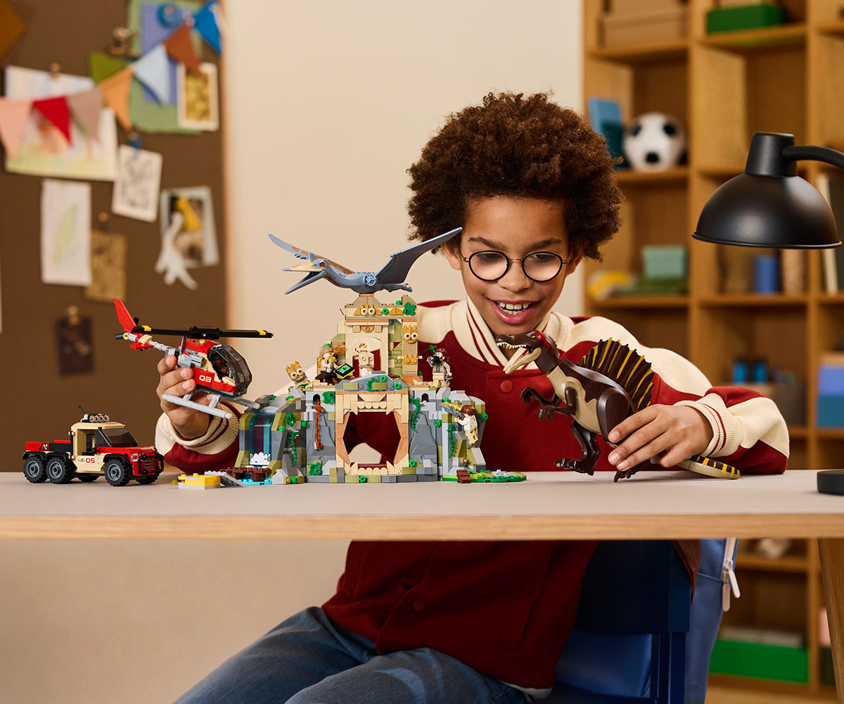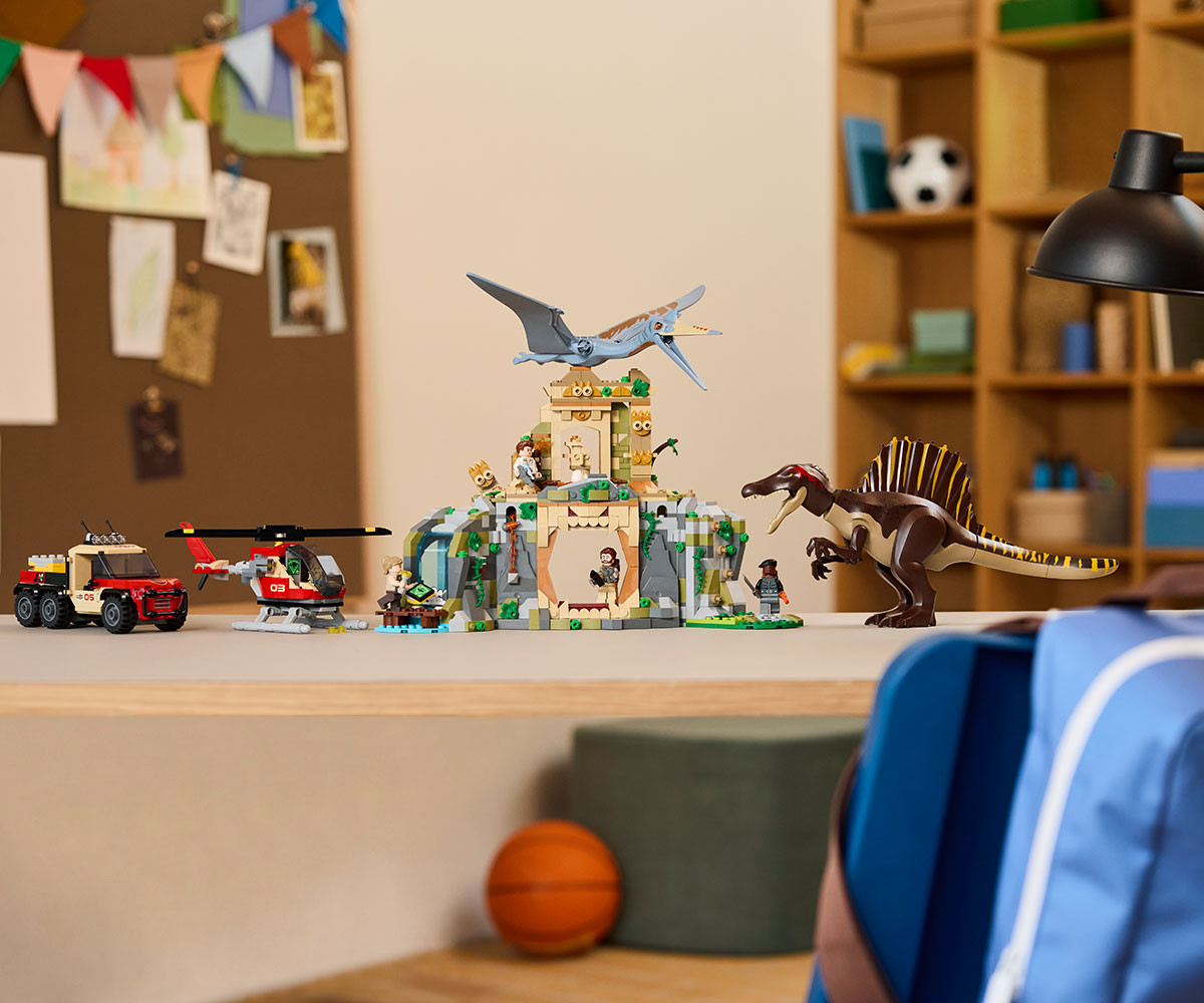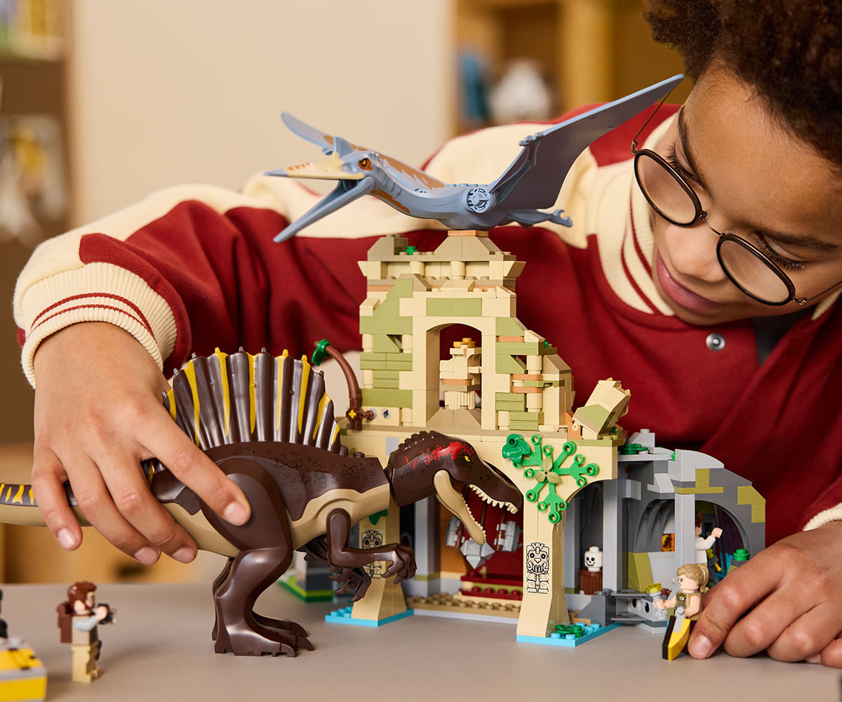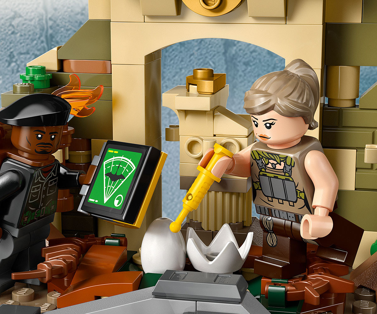 Вдъхновете феновете на откритията и приключенията с комплект LEGO® Jurassic World с 2 фигури на динозаври, храм, 2 превозни средства, 4 минифигури и др.
