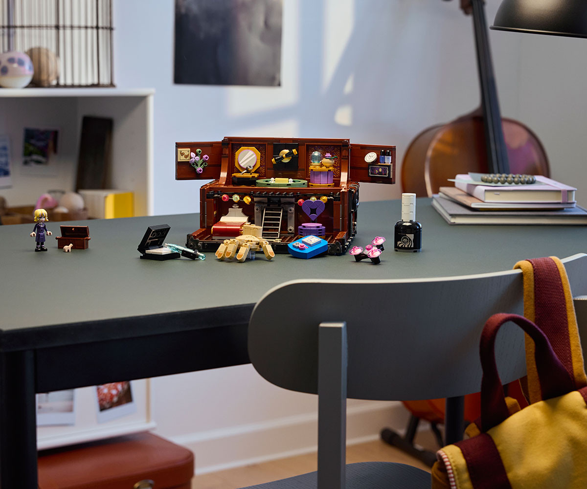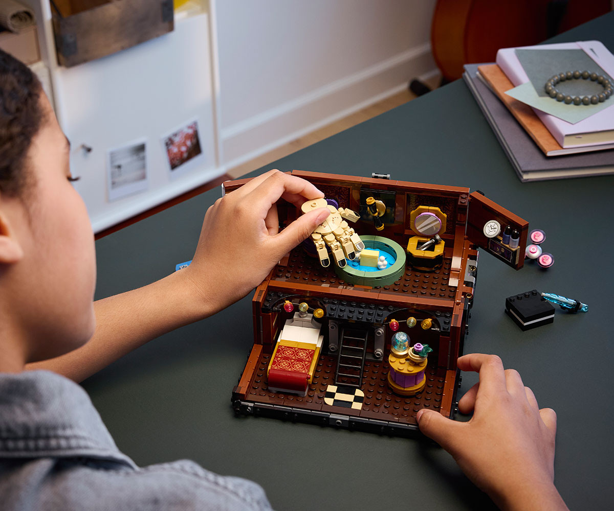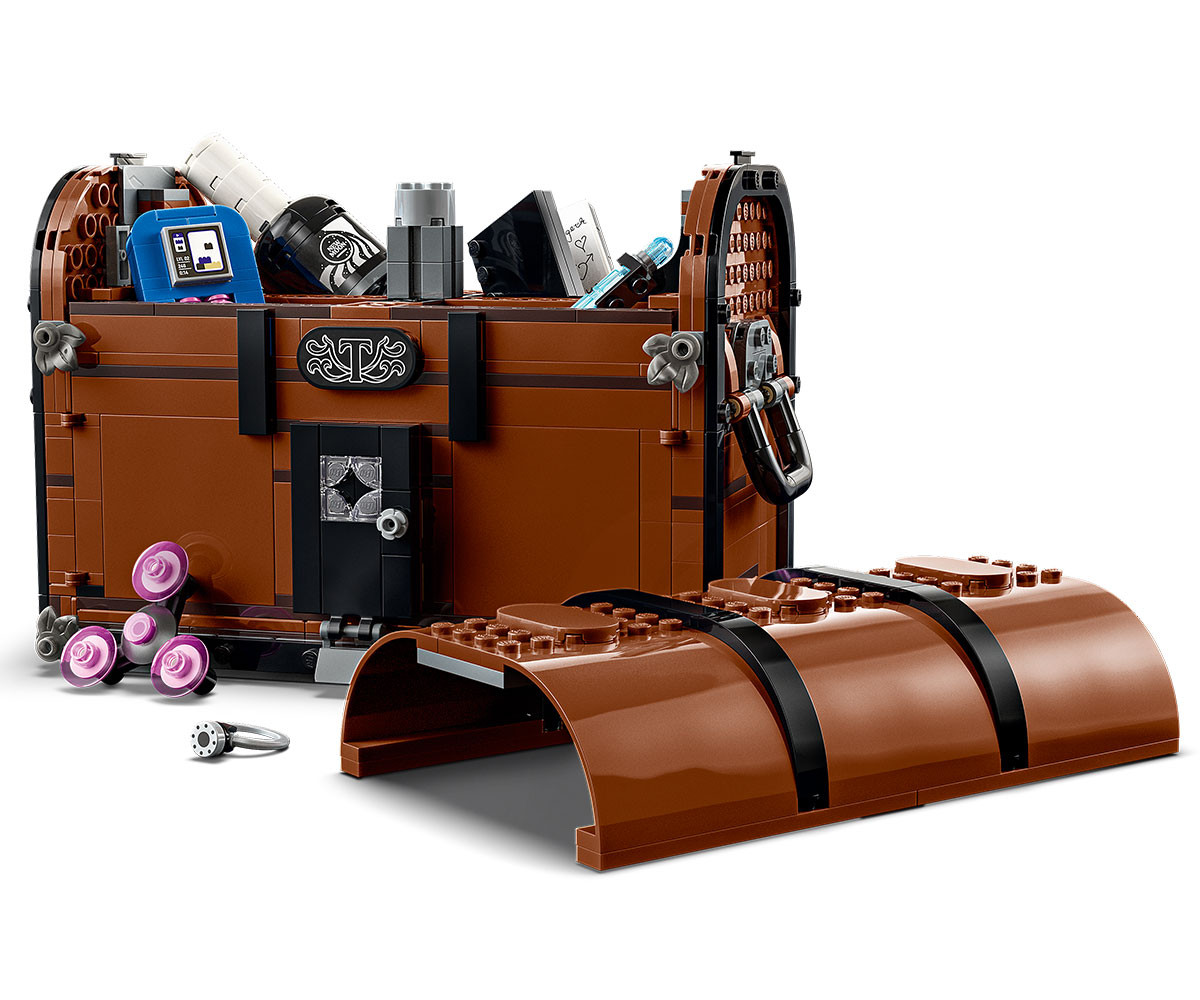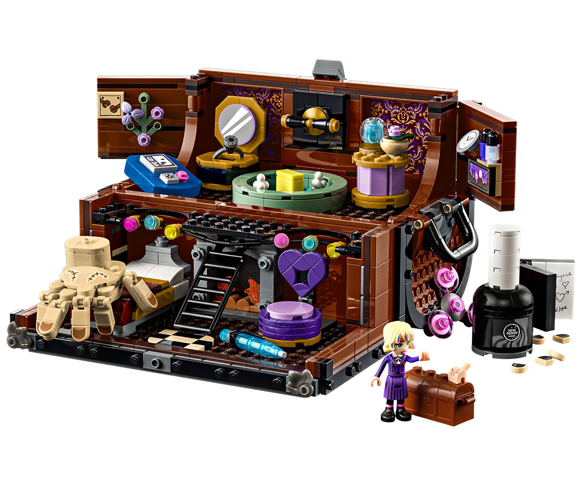 Разгледайте новия апартамент на Нещото! Създайте уютен преносим дом в този отварящ се сандък за построяване. Сложете мебелите и другите предмети, запалете огън, докато Нещото се освежава след поредното приключение с Уензди, а после заедно с Инид поглезете Нещото с нов лак за нокти. Пишете, играйте видеоигри или се отпуснете. Накрая затворете сандъка за забавен експонат. Домът е там, където е сандъкът на Нещото.