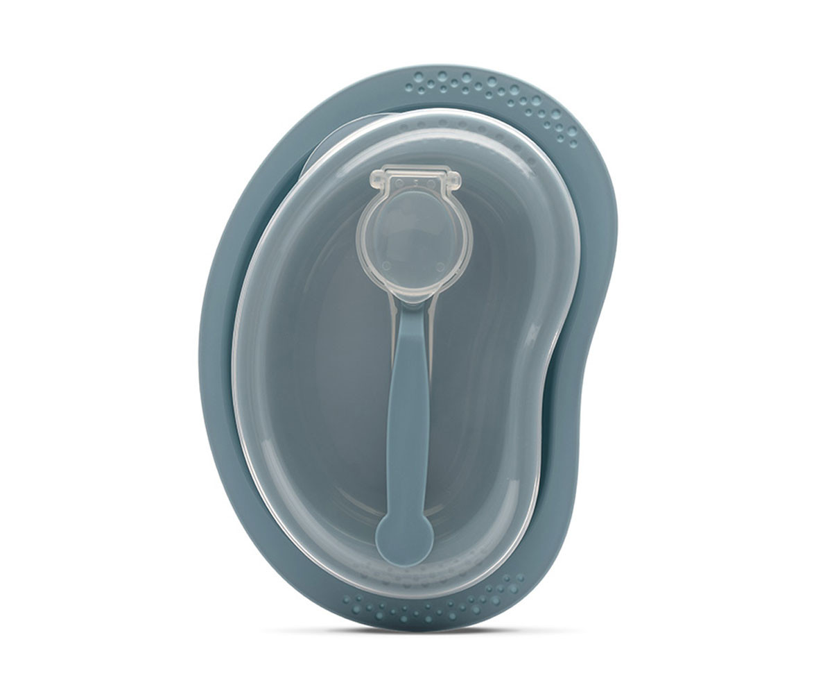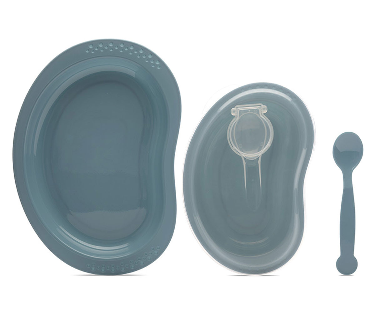 Комплектът съдържа чинийка, купичка с капаче и лъжичка.