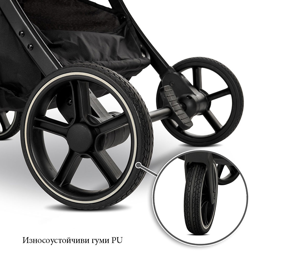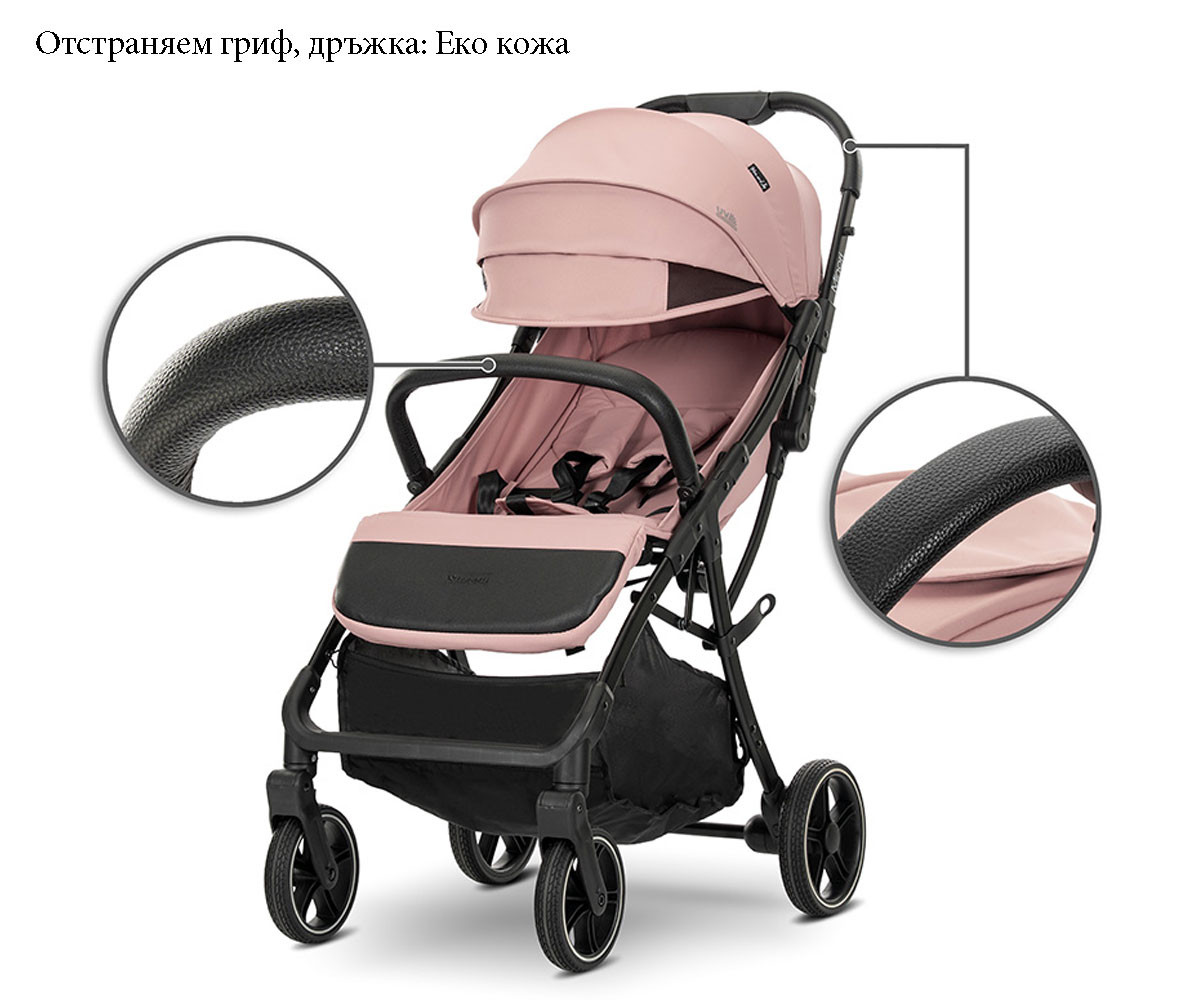 Почиставайте тапицерията повърхностно с топла вода и мек препарат. Не използвайте белина. Не сушете на директна слънчева светлина. Пластмасовите детайли почиствайте с кърпа, вода и мек препарат. Металните части почиствайте с влажна кърпа и изсушете добре със суха кърпа. При експлоатация върху запрашен или кален терен, ходовата част трябва да се почисти и смаже, за по-комфортно движение. Периодично смазвайте с масло болтовете и осите на колелата. Когато количката е на съхранение, никога не поставяйте други предмети върху нея! Периодично проверявайте за разхлабени или повредени части и ако има такива, незабавно ги заменете с нови!
