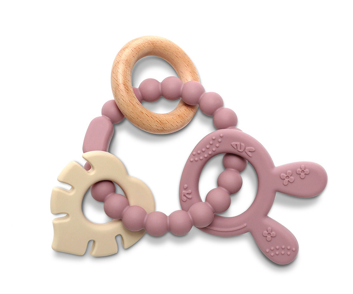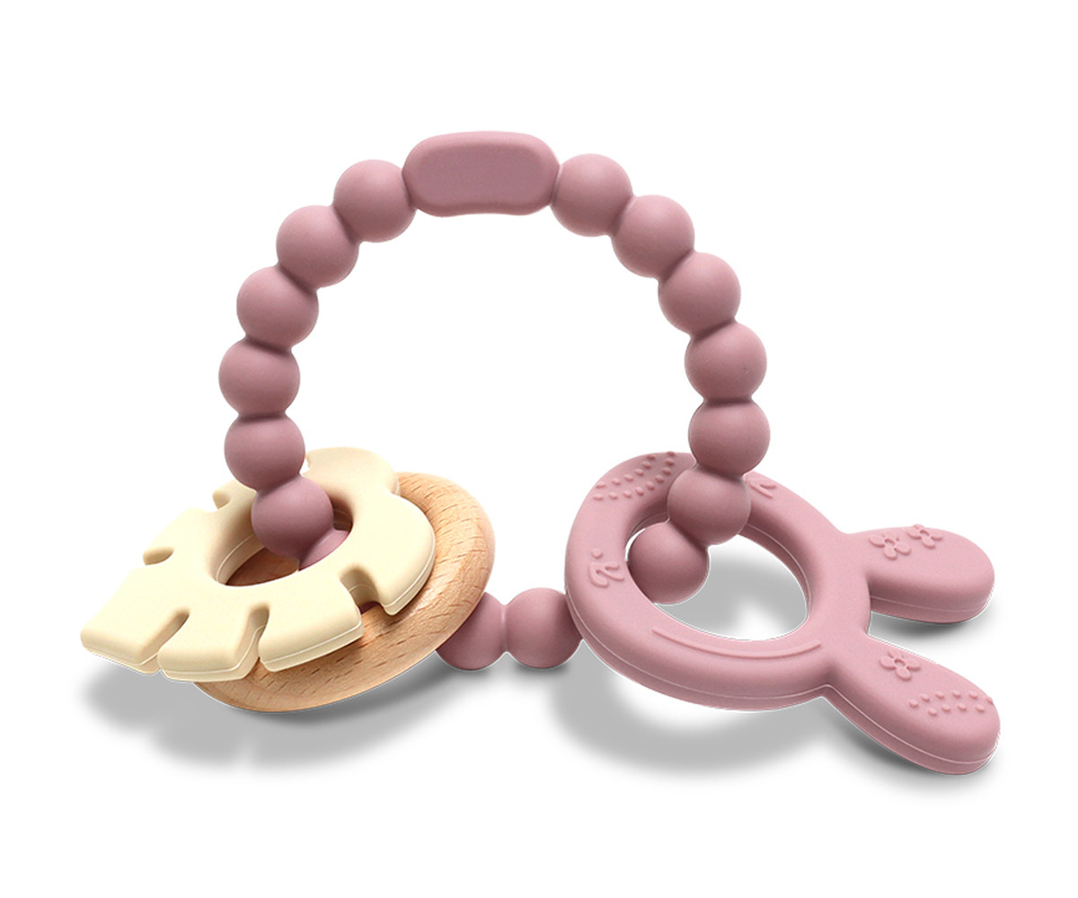 Изработена от силикон и букова дървесина. Перфектна за масажиране на нежните венци на бебето в периодa на растеж на млечните зъбки. Леснa за хващане.