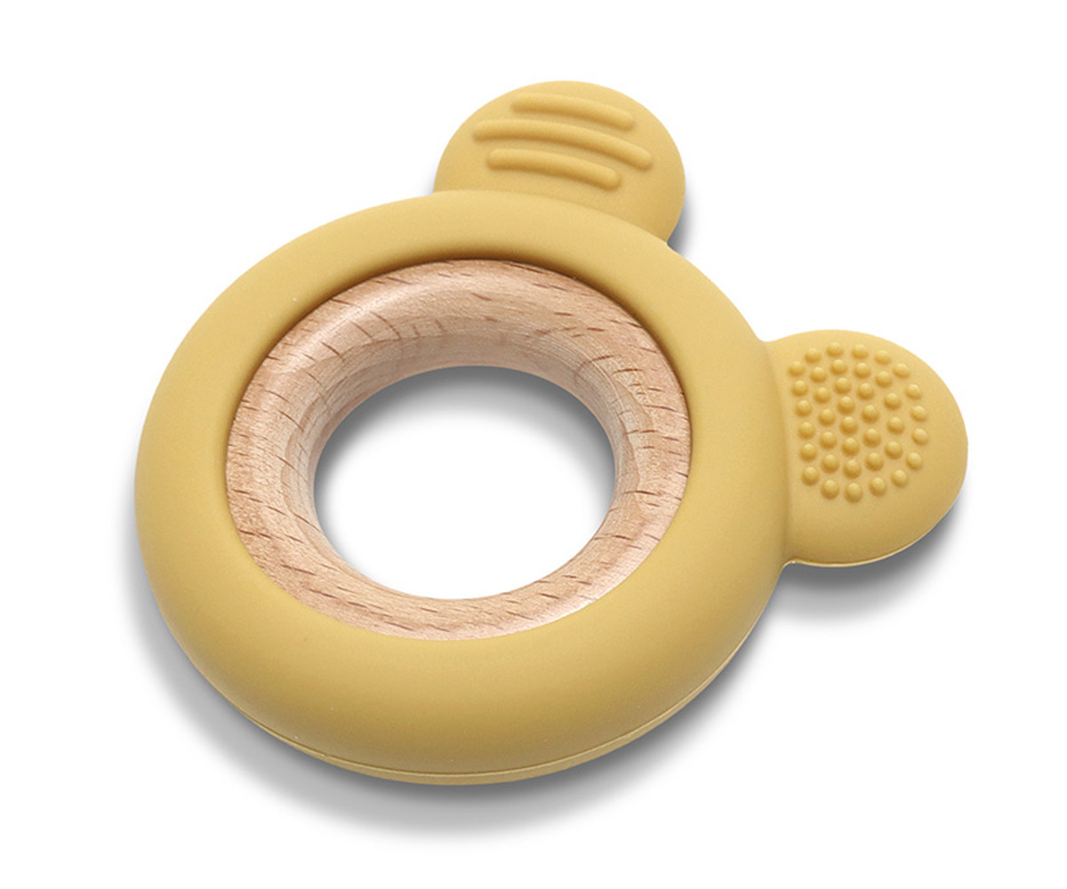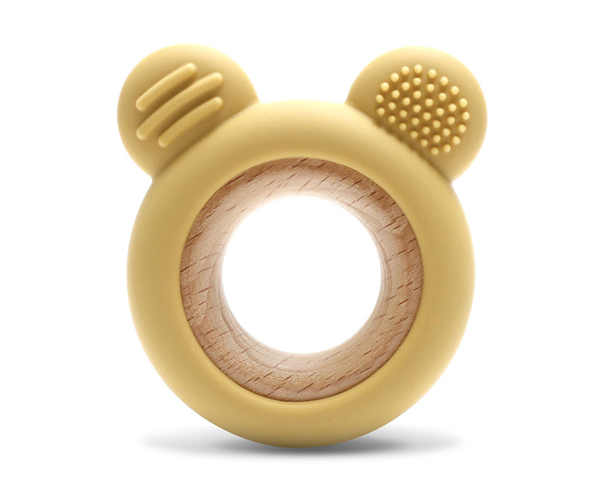 Изработена от силикон и букова дървесина. Перфектна за масажиране на нежните венци на бебето в периодa на растеж на млечните зъбки. Леснa за хващане.
