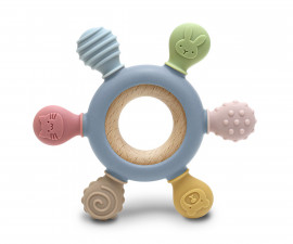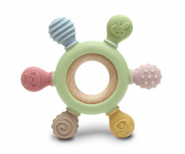 Изработена от силикон и букова дървесина. Перфектна за масажиране на нежните венци на бебето в периодa на растеж на млечните зъбки. Леснa за хващане.