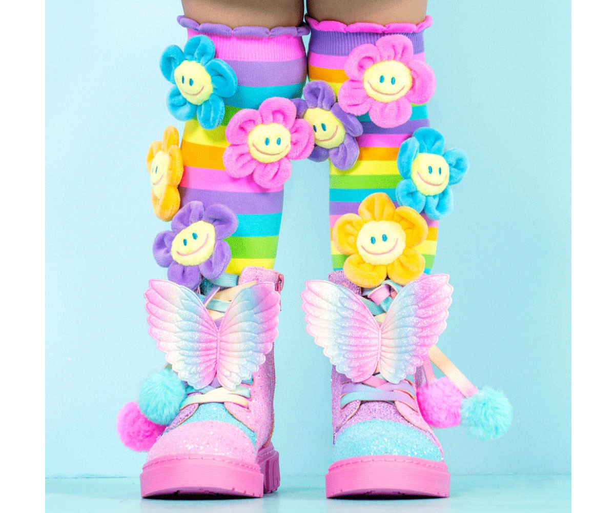 Посрещни пролетта с цветни чорапи Маргаритки, украсени с ръчно изработени плюшени цветя! Ярките и весели цветове на цветята ще озарят всеки тоалет и ще внесат пролетно настроение в гардероба ти през цялата година. Една доза от тези цветни чорапи ще ти даде дълготрайна енергия и сладка визия! Те са идеалният избор за танцови партита, рождени дни, забавления всеки ден или просто за да внесеш още повече усмивки в деня си с всяка крачка. Чорапите MADMIA са изработени от висококачествени материали и са меки, удобни и създадени да издържат дълго. За оптимална грижа за Madmia чорапи препоръчваме ръчно пране в студена вода, като се обръща специално внимание на крилцата и останалите 3D аксесоари. Правилното изпиране е от съществено значение за запазване на качеството и целостта на Madmia чорапи.