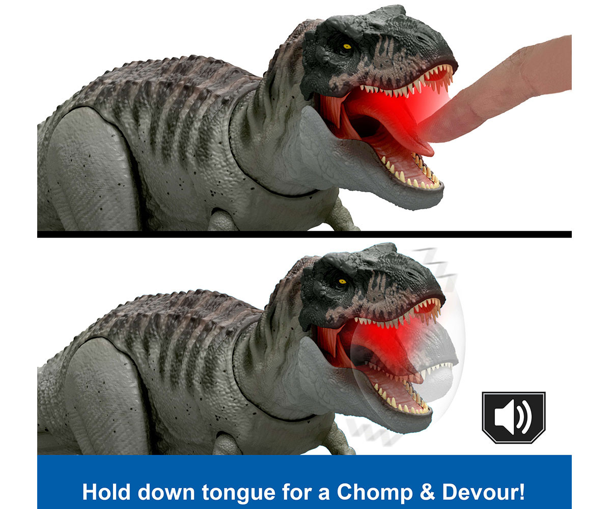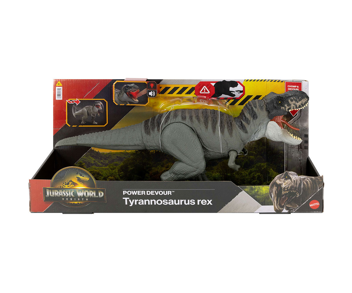 - Name: Mattel JCH02 - Jurassic World Rebirth Power Devour Tyrannosaurus Rex Dinosaur Figure, Constant Chomp Lights & Sound