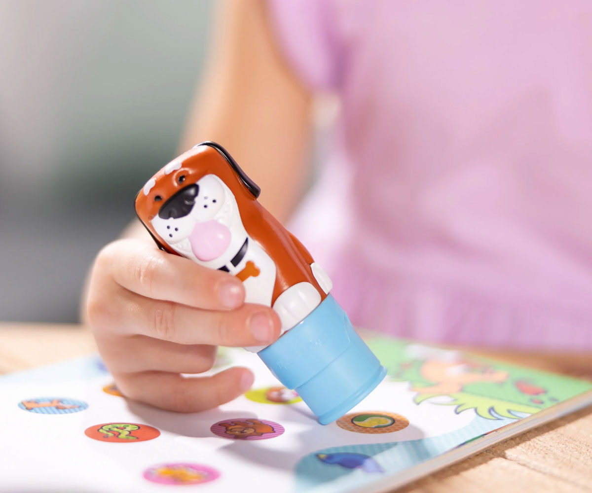 Melissa & Doug Sticker WOW!™ – съвсем нов начин за игра със стикери! Нека очарователният колекционерски герой Cocoa the Dog щампова, щампова, щампова върху 24 страници, пълни с теми за домашни любимци – броене, съчетаване и игри „намери и открий“.