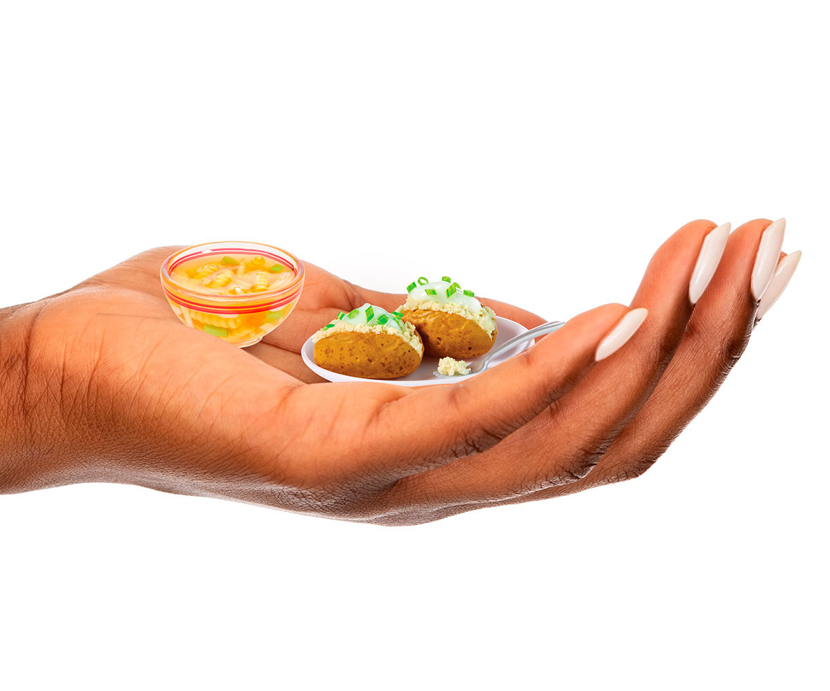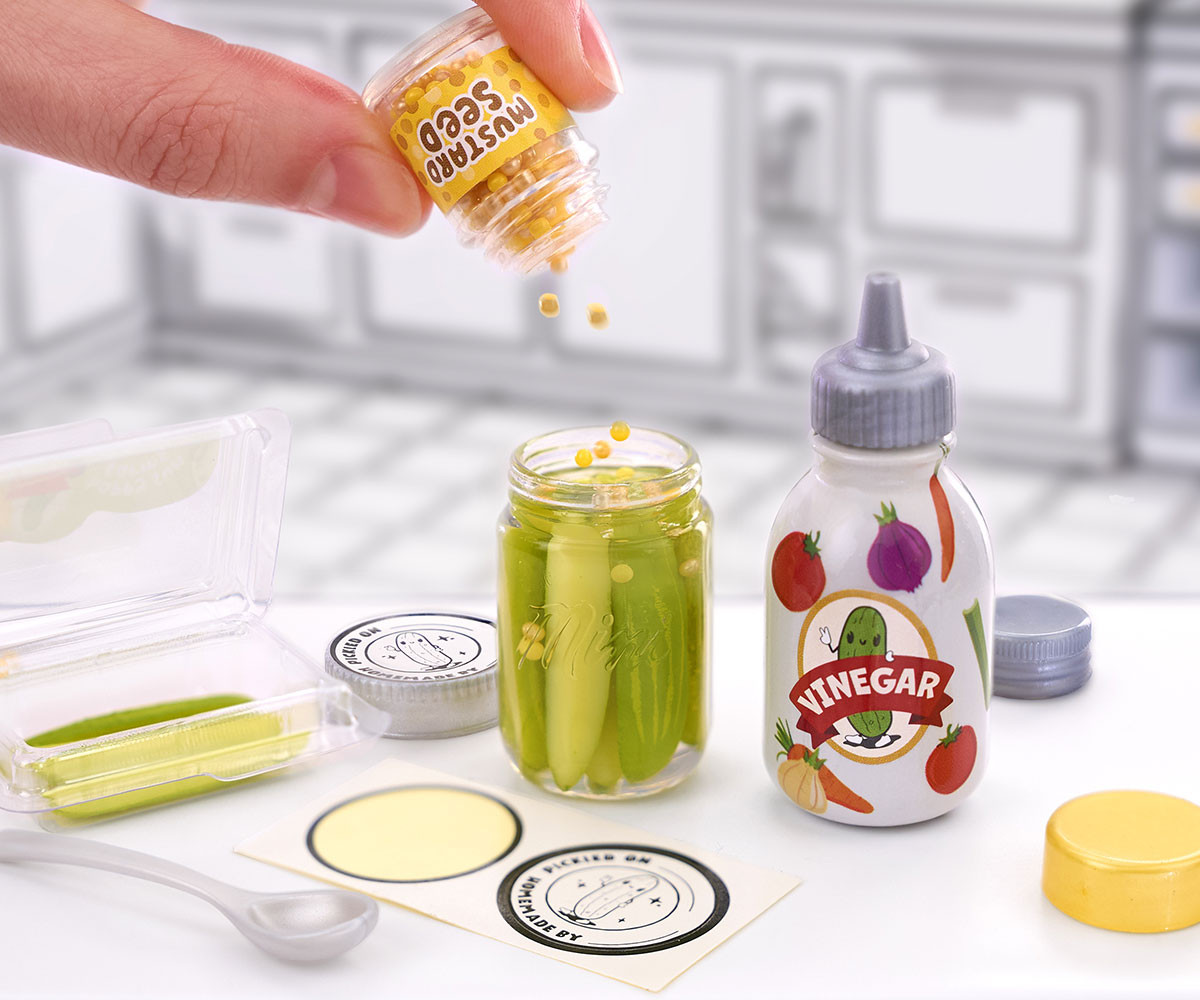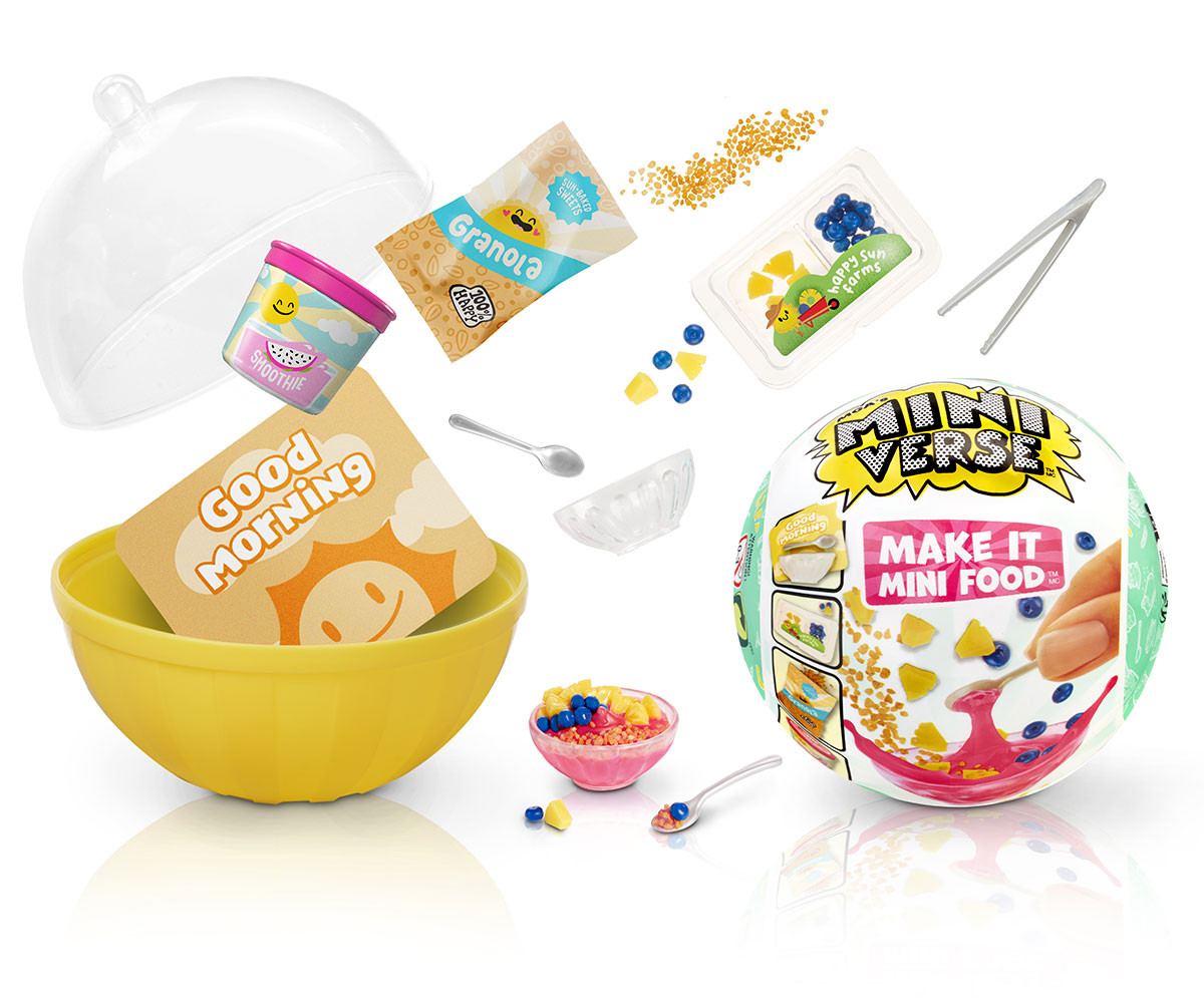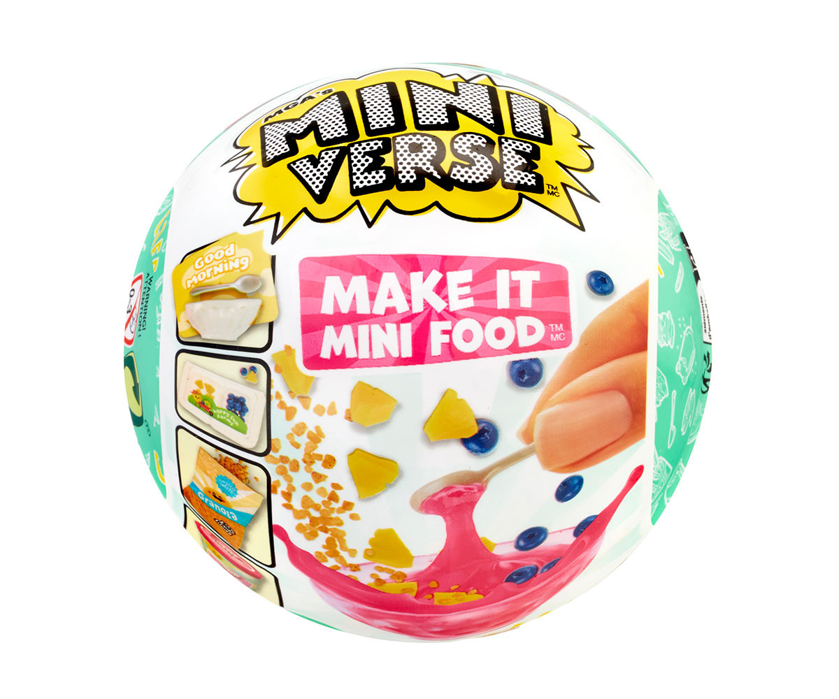 Всеки пакет е изненада, така че няма да знаете кое Мини ще получите, докато не го разопаковате. Не само ще искате да събирате и показвате завършения си мини комплект, но и съставките и мини опаковките са също толкова сладки и колекционерски! От мини сламки, през мини кутии за макарони, до мини чинии с начос – има над 100 уникални съставки, опаковки и кухненски аксесоари за събиране и създаване на вашите собствени мини храни. Съберете всичките 12 невероятни рецепти. Сравнете съдържанието на пакета с включеното ръководство за колекционери, за да видите кое Мини сте получили. Следвайте картата с рецепти отзад, за да създадете вашето мини хранително колекционерско изделие или нека въображението ви води. След като завършите създаването на вашето Мини, поставете го под UV светлина, докато смолата се втвърди. Най-добър резултат се постига с UV лампа, но може да го оставите и на слънце за 5 минутки. Капсулата не включва UV лампа. Преди употреба, поставете бутилките със смола в купа с топла или гореща вода за около пет минути, за да извадите цялото необходимо количество от бутилката. Поставете вашето колекционерско изделие Miniverse в капсулата, която също така служи като стойка.