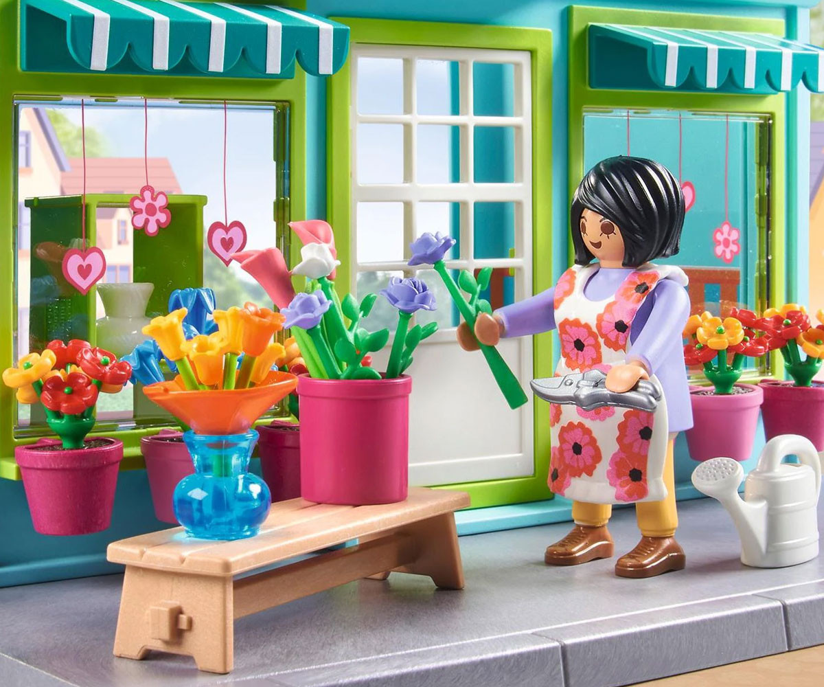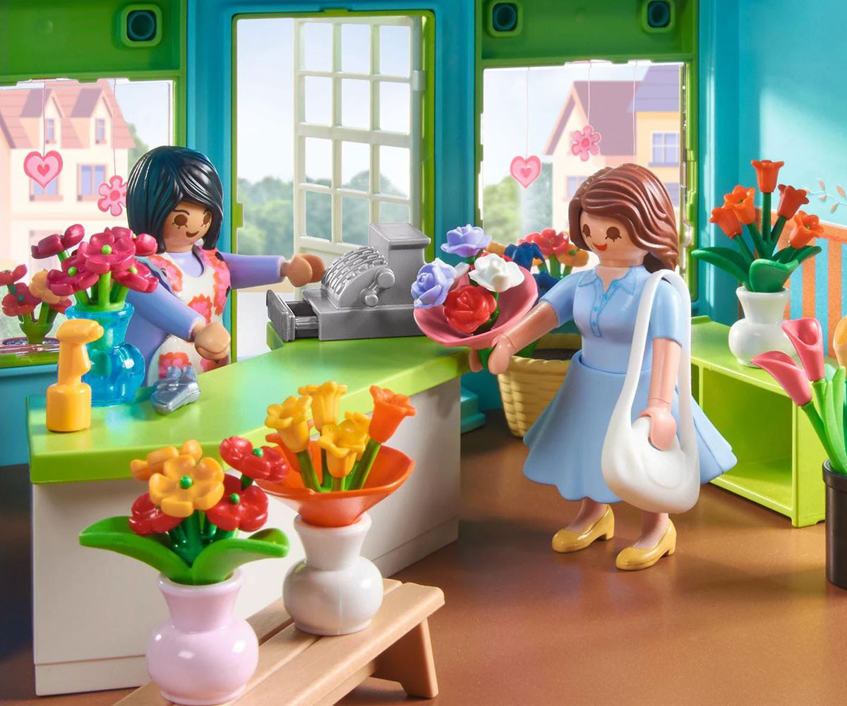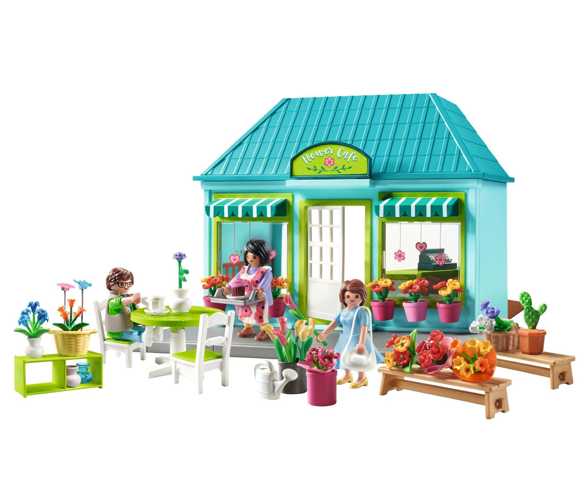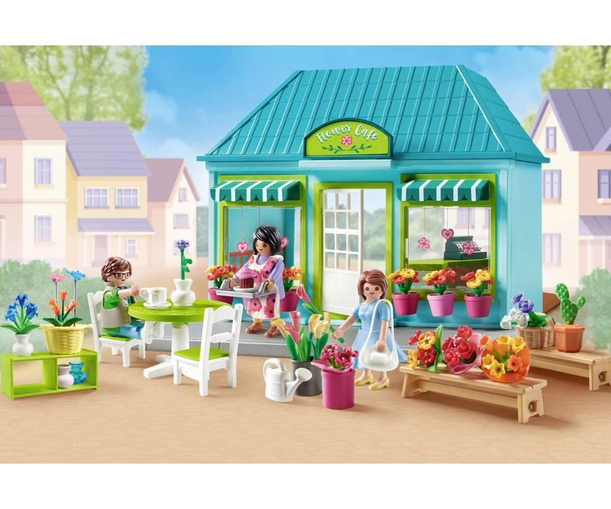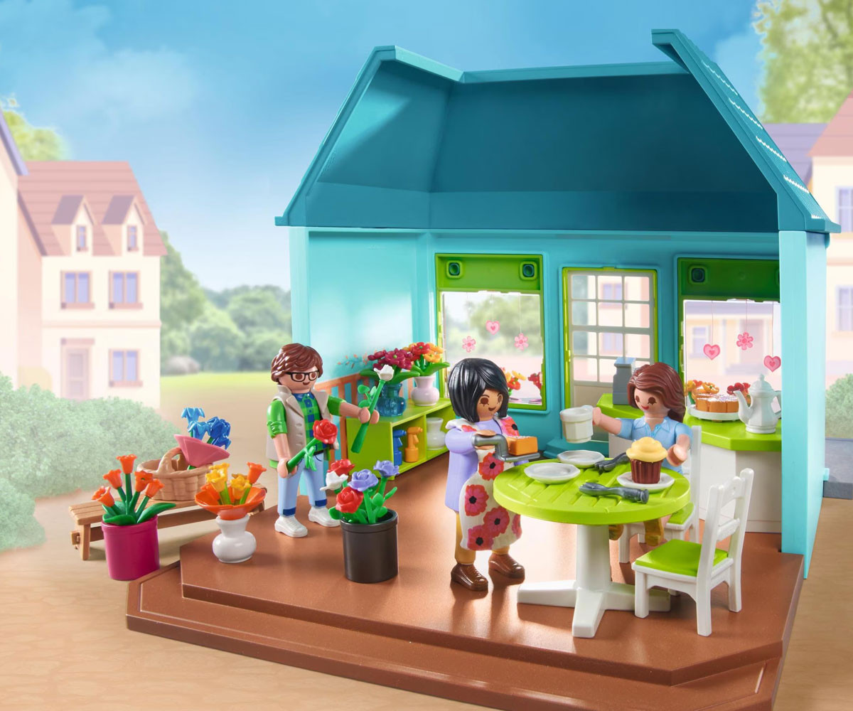 Уютният магазин за цветя предлага не само красиви цветя, растения и букети, но и вкусни хапки по време на пазаруването! Влезте в магическия свят на Flower Cafehouse! Този очарователен магазин е перфектната смес от живо цветно пазарче и уютно кафе, предлагащо чудесно убежище за всички. Независимо дали аранжирате красиви букети или сервирате кафе и торта, всяко посещение е шанс за творчество и забавление. С прекрасни детайлно изработени аксесоари като поливници, спрей бутилки и висящи саксии, малките цветари могат да подготвят своите експозиции и да създават цветни шедьоври. Междувременно кафето е напълно оборудвано с всичко необходимо за перфектен чай. Flower Cafehouse обещава безкрайно удоволствие за начинаещи градинари, пекари и търговци!