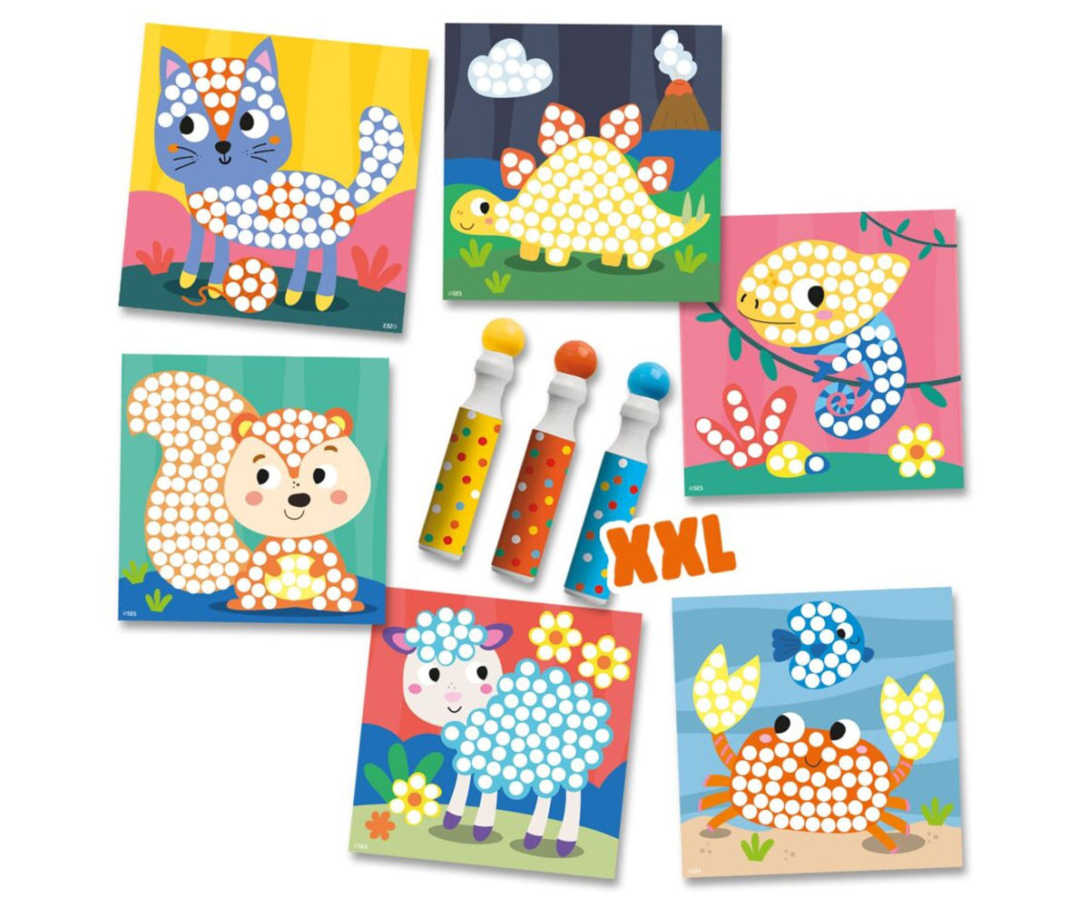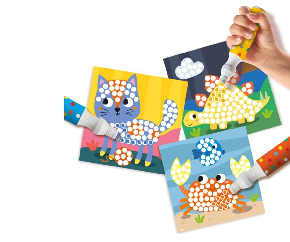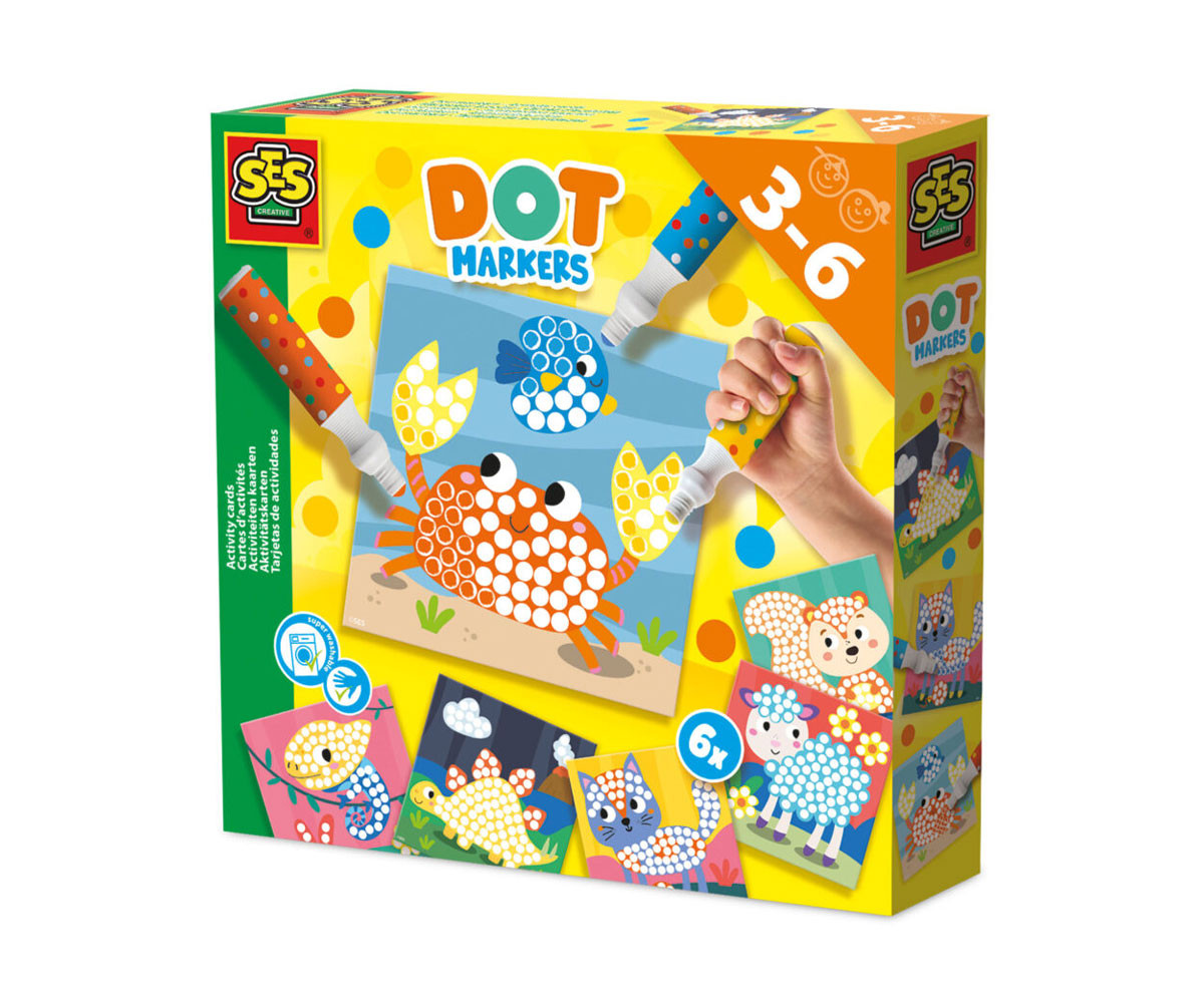 Открий Точковите маркери с карти за дейности – идеални за малки творци от 3 до 6 години! Този комплект включва XL точкови маркери, които са лесни за хващане и миещи се, което прави рисуването безопасно и забавно. С жълт, оранжев и син маркер, както и 6 забавни шаблона за оцветяване с точки, децата могат да се радват на безкрайно творчество и игра.