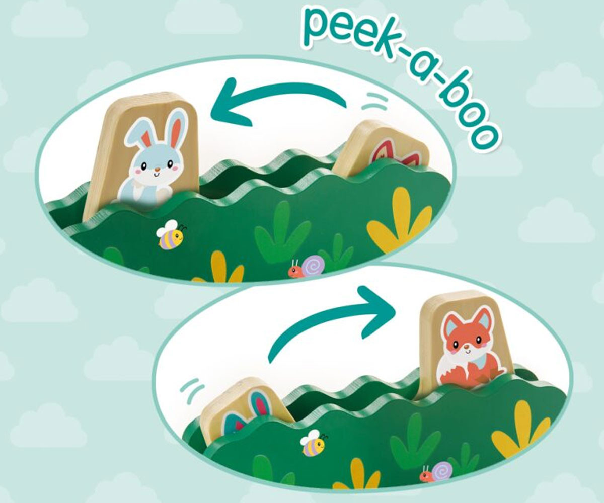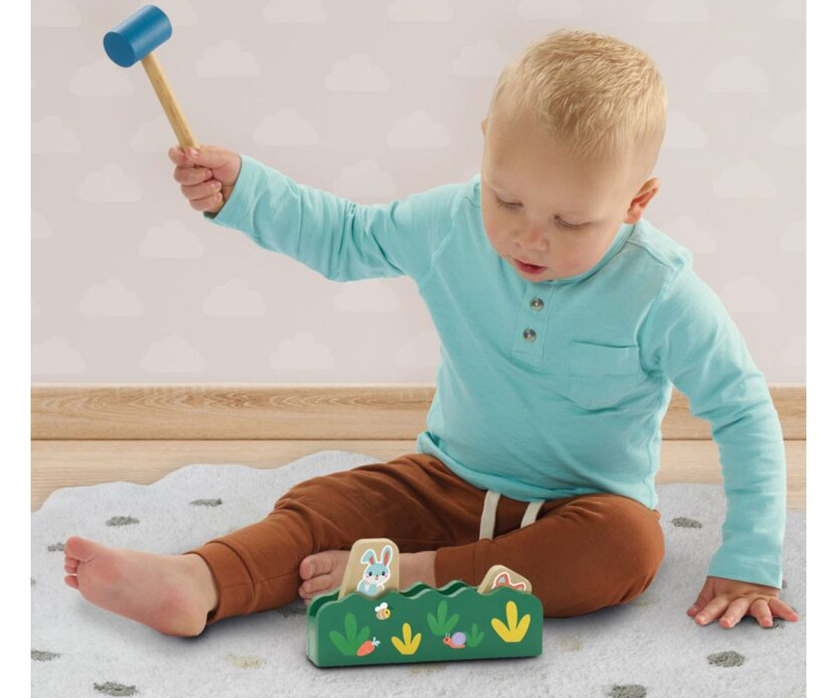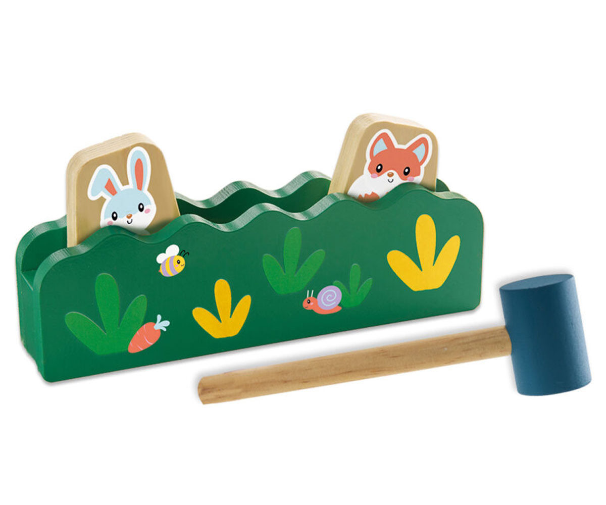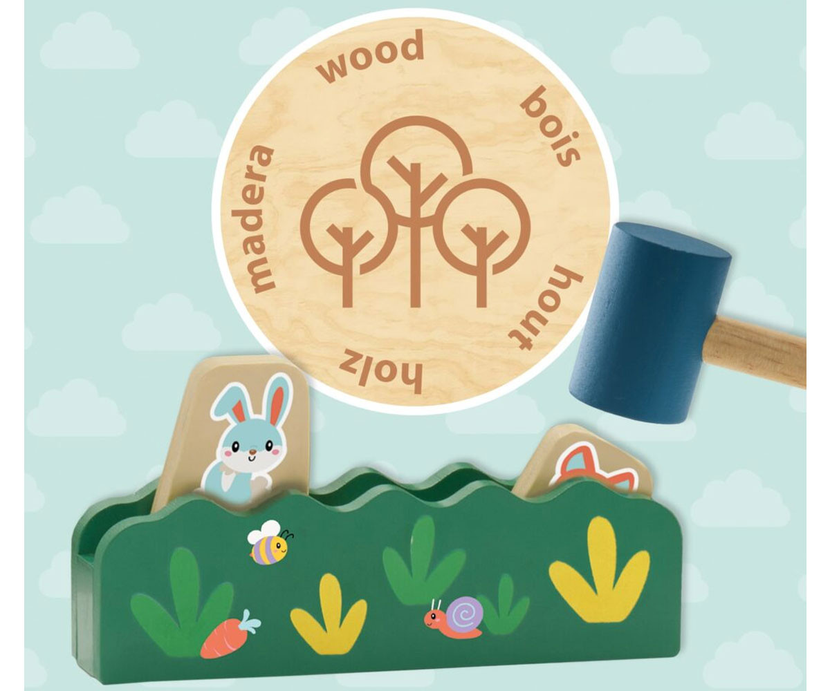 Позволете на детето си да се забавлява безкрайно с дървената играчка "Чук-чук: Надникни и се покажи"! Този дървен чук гарантира весело и ангажиращо забавление. Когато ударите едната страна с дървения чук, от другата страна се появява малко същество – изненадващият ефект стимулира любопитството и моторните умения на детето.