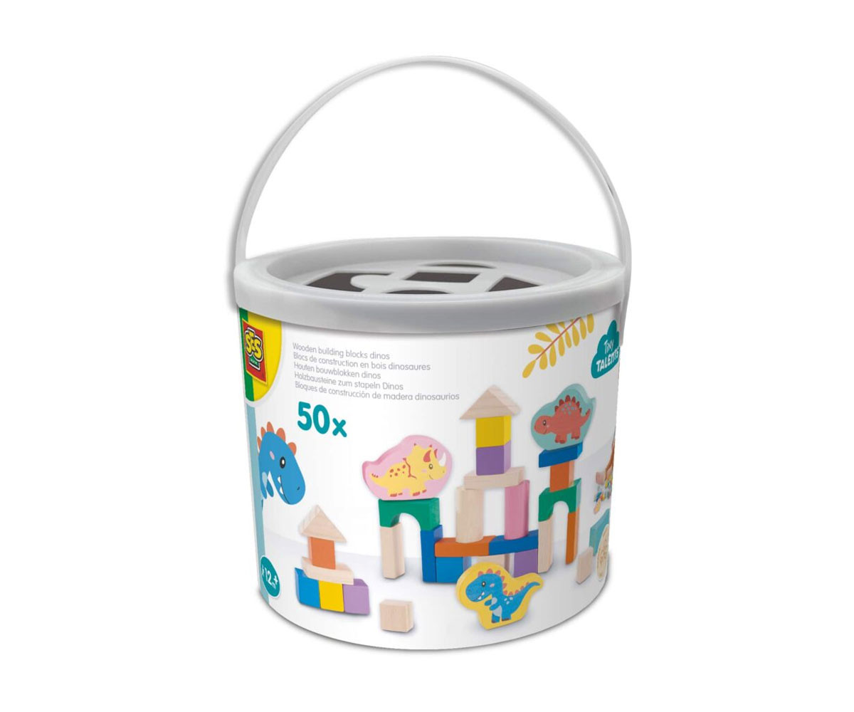 SES - Дървени строителни блокчета динозаври, кофа 50 части