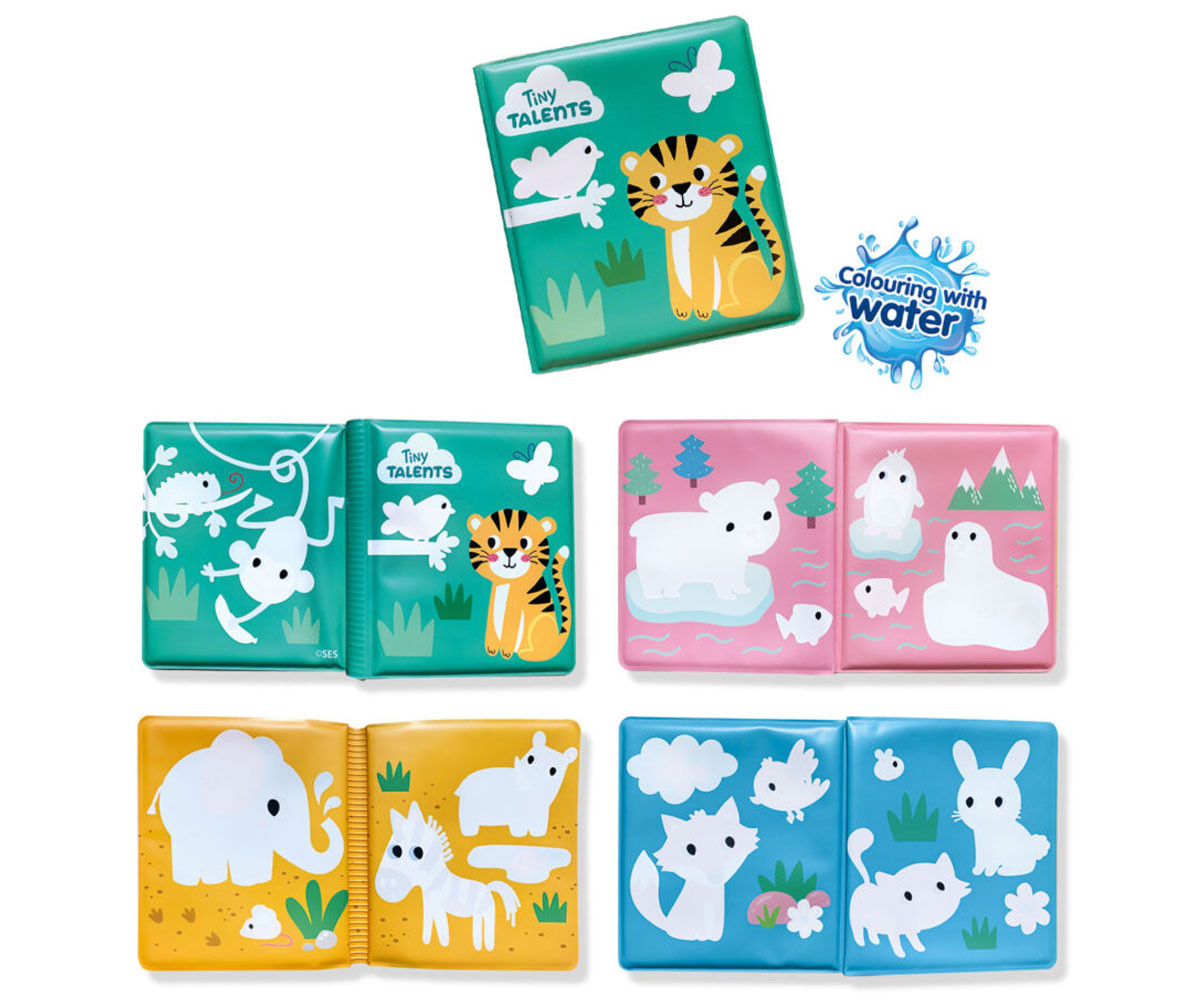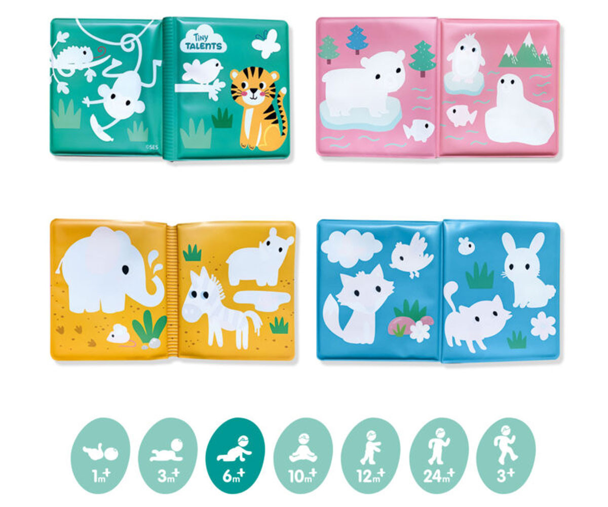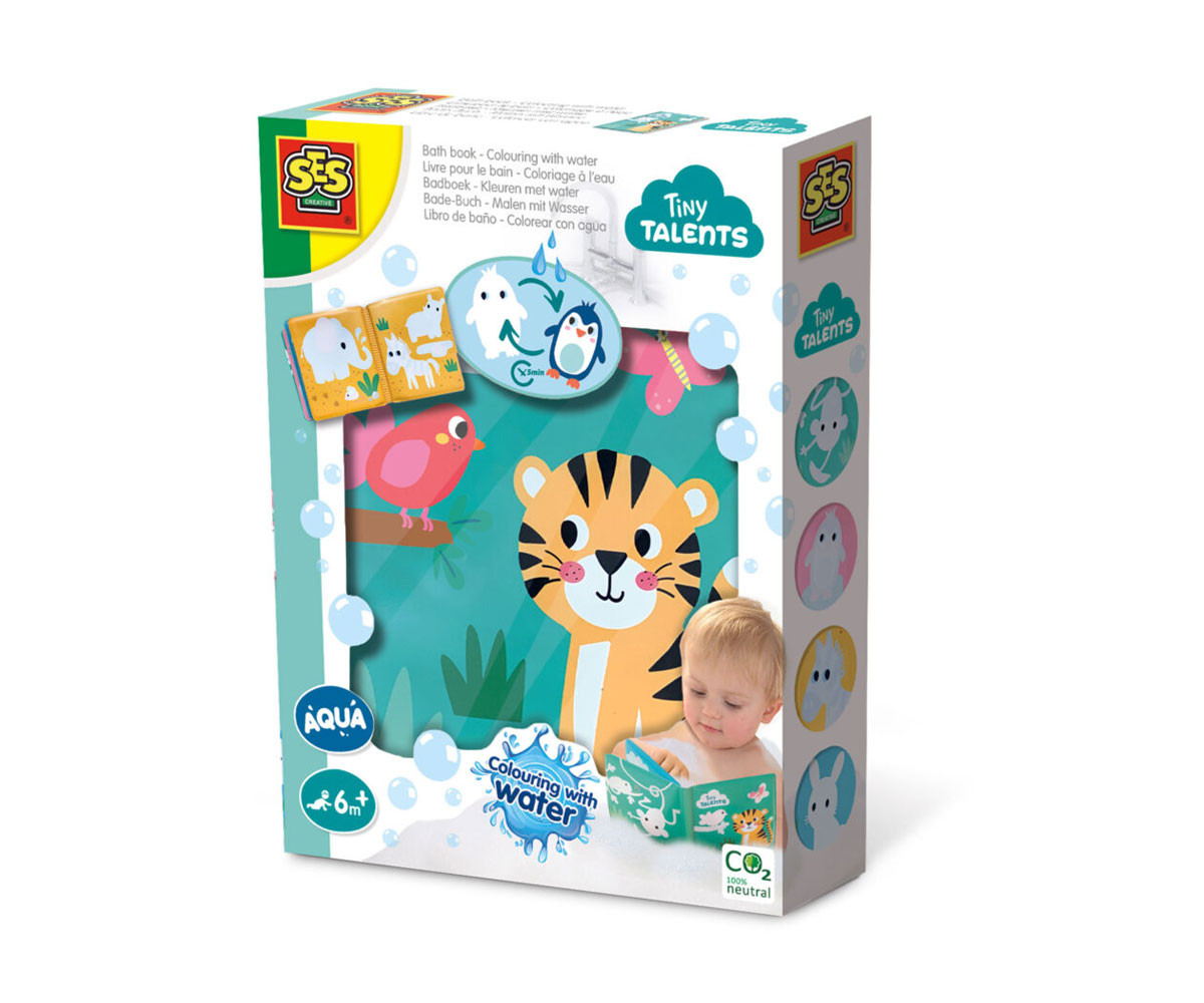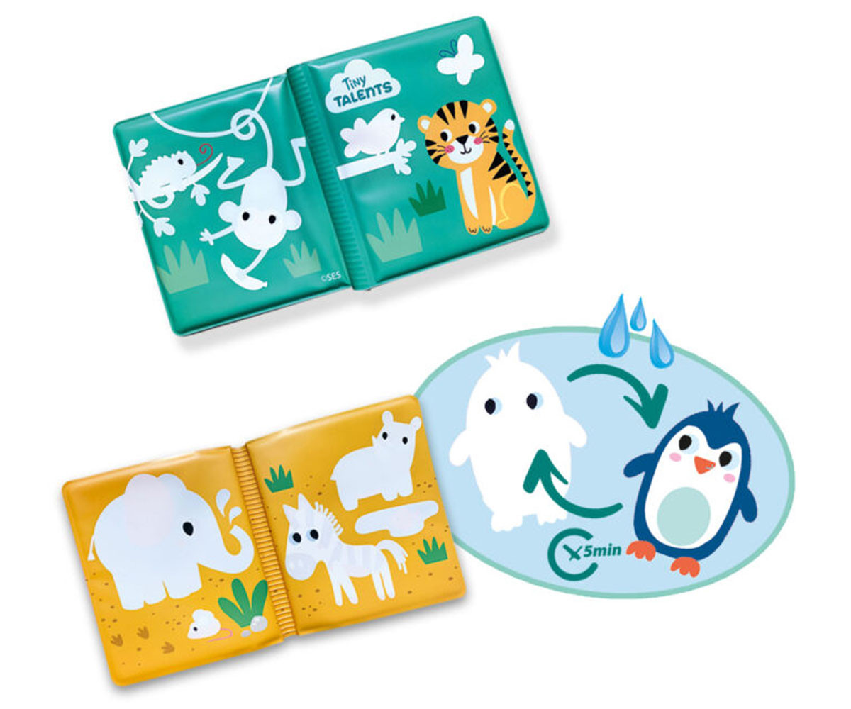 Магическа книжка за баня с водни животни (8 страници). Къпането никога не е било толкова забавно! С тази вълшебна книжка от SES Creative, детето ви ще се потопи в истинско приключение. Книжката разкрива цветни и весели илюстрации на животни, когато се намокри – магията оживява пред очите на малчуганите!