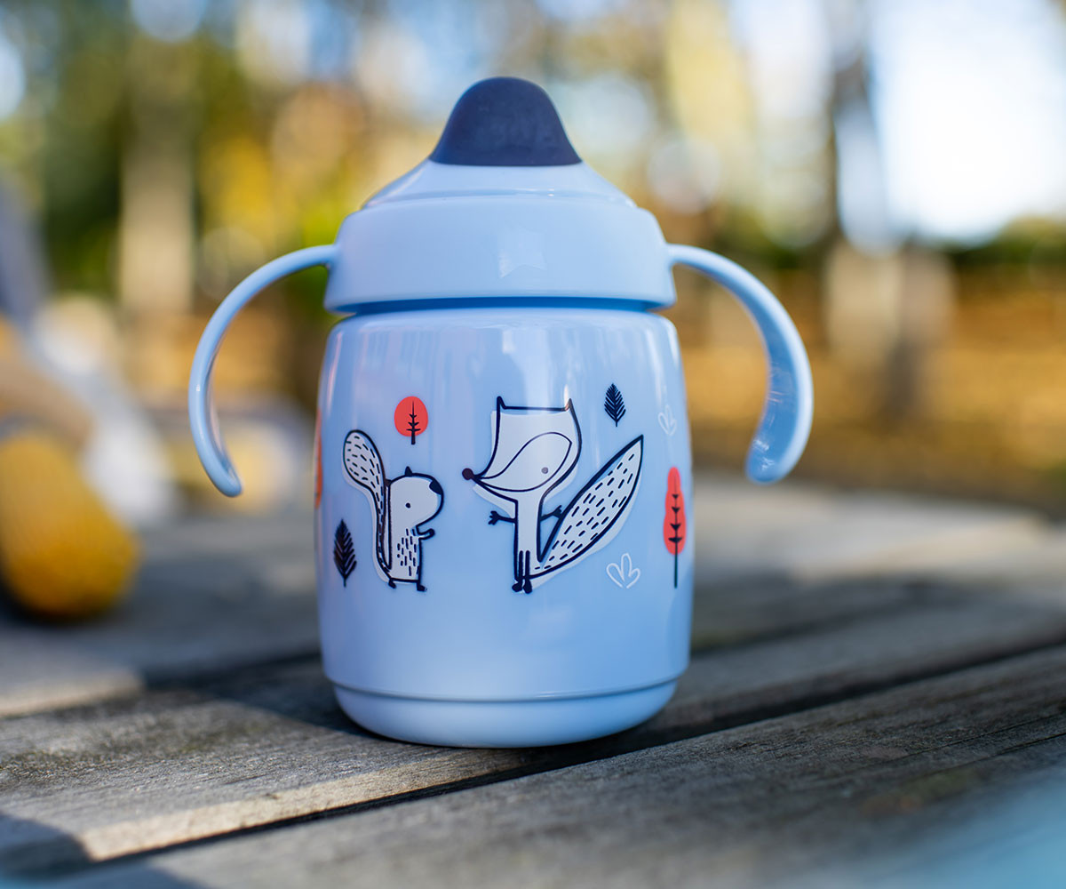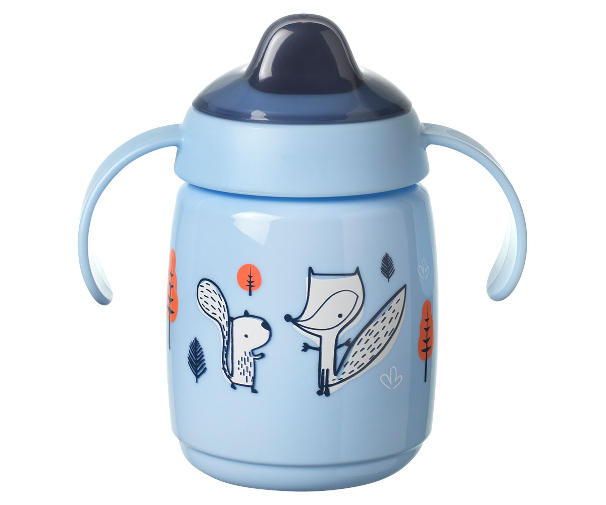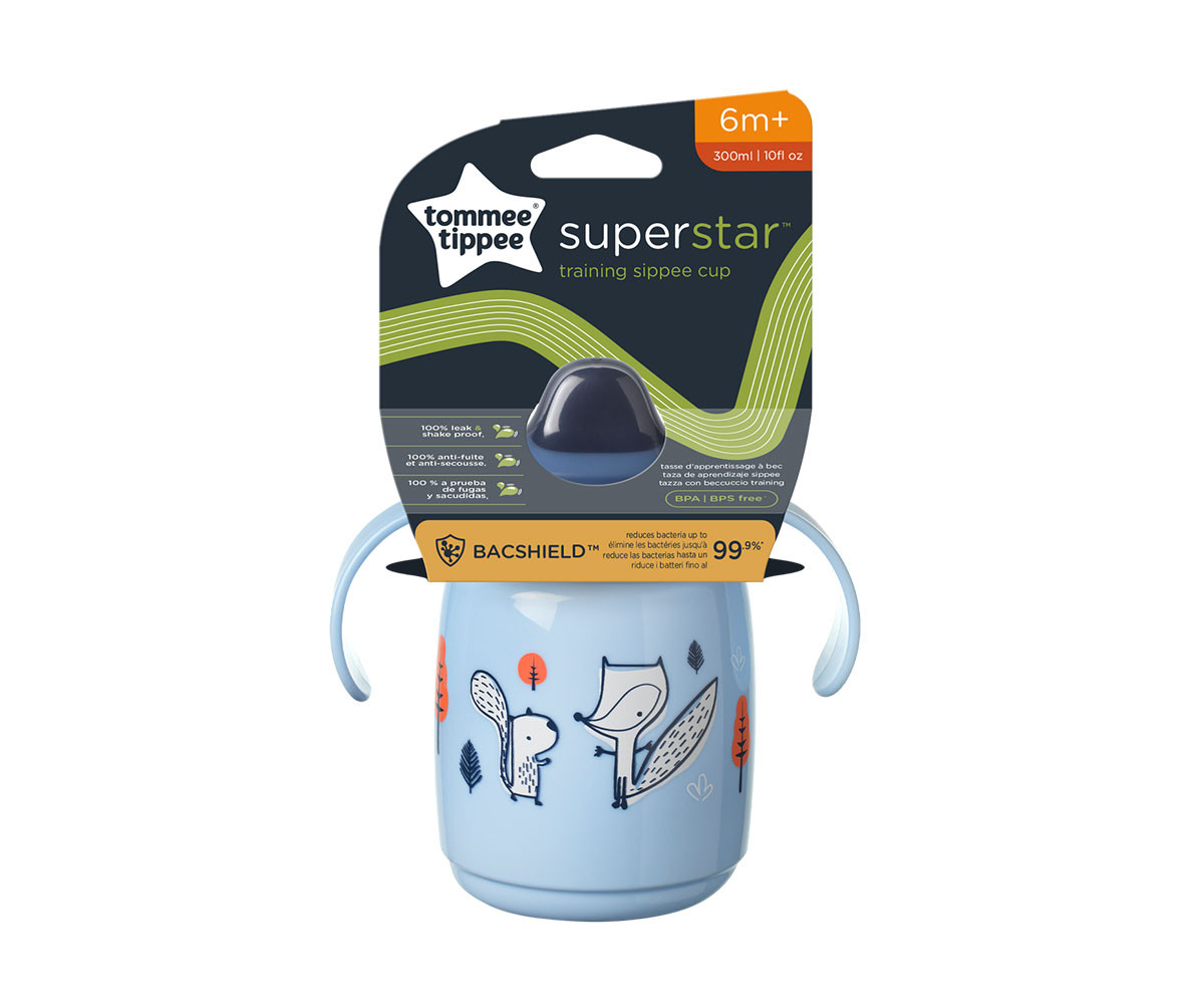 Tommee Tippee - Неразливаща се чаша с мек накрайник и с дръжки Superstar, 300мл, Bacshield, синя, 6м+