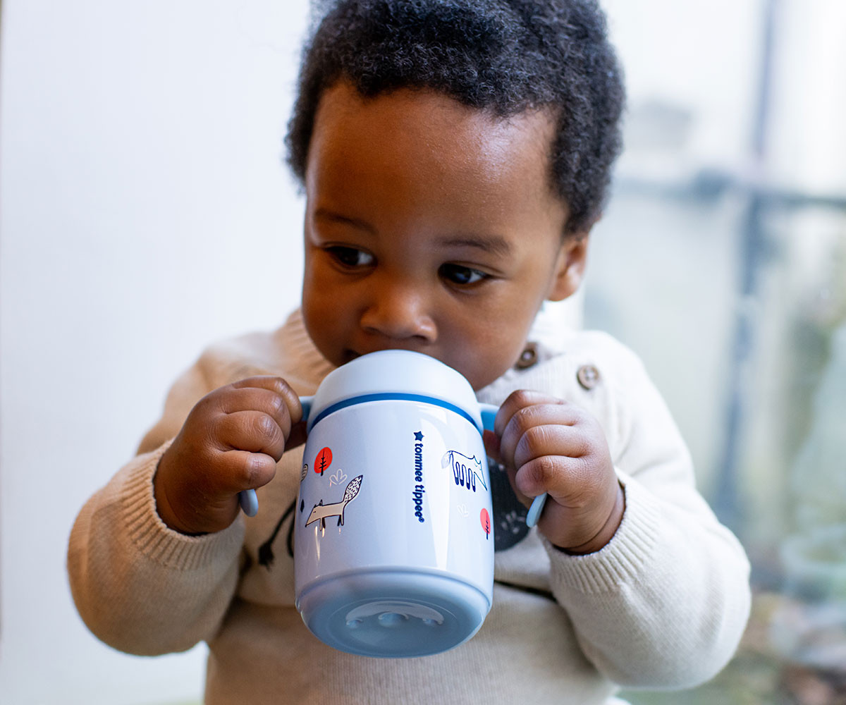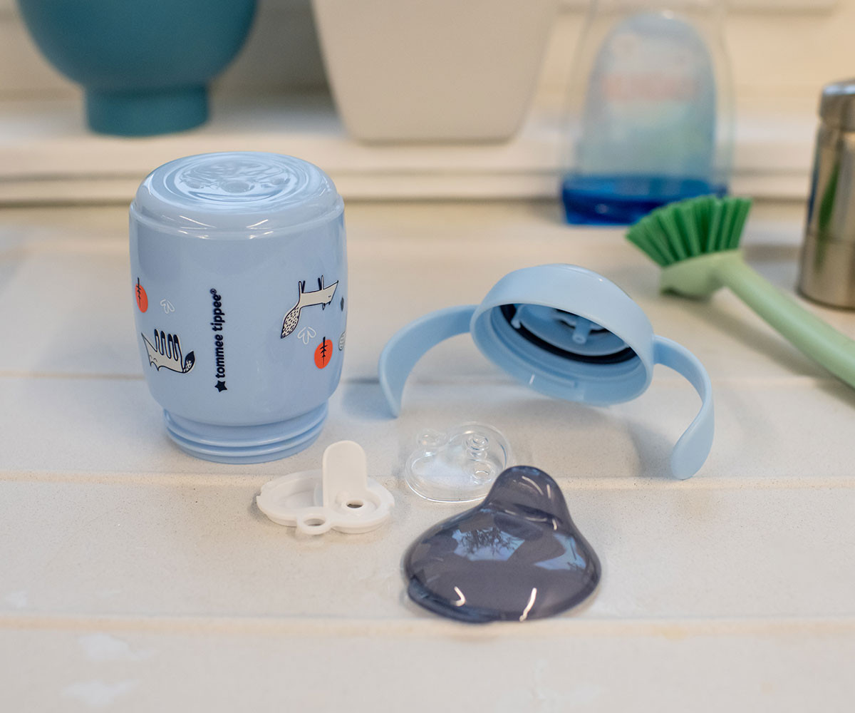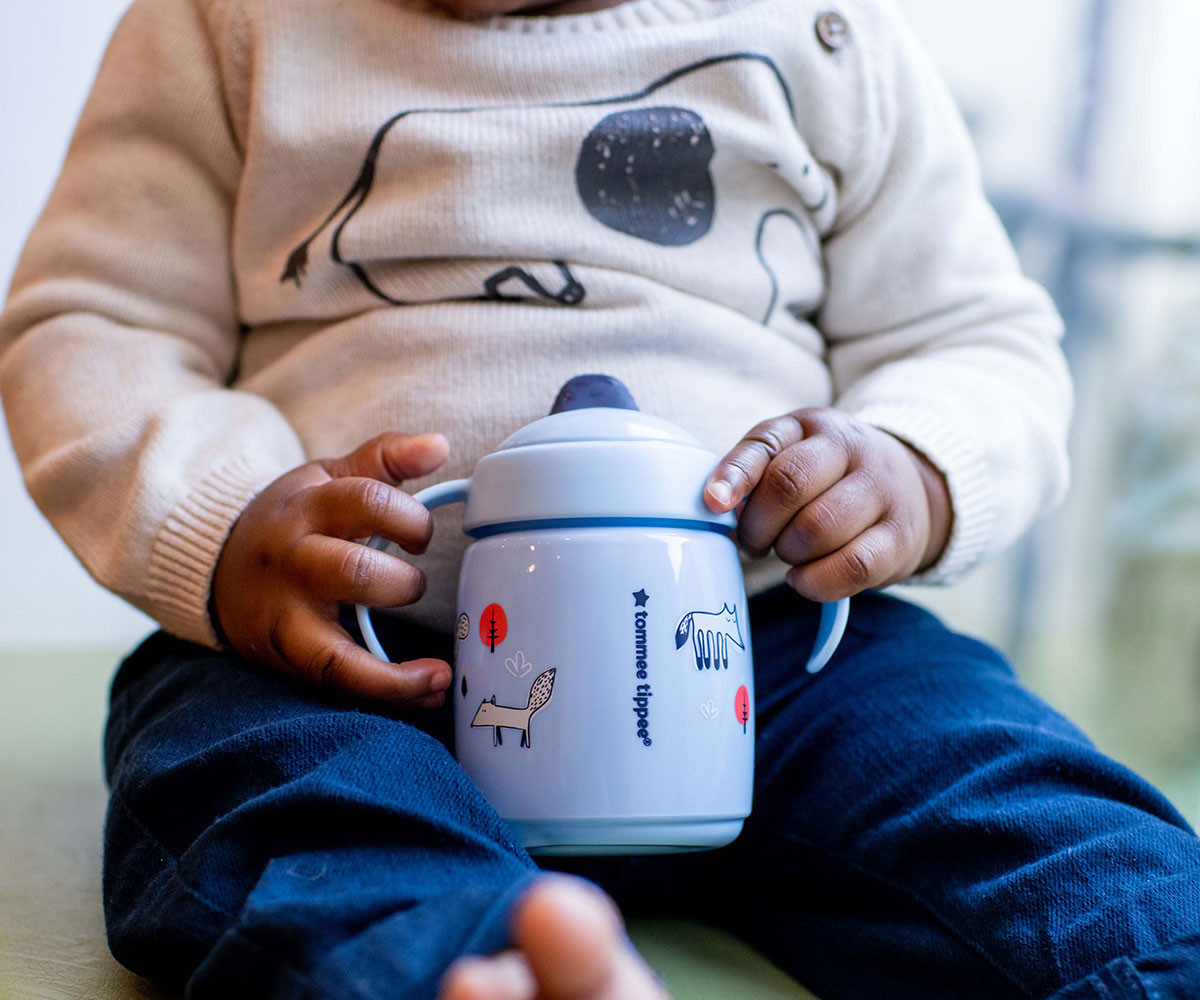 Tommee Tippee - Неразливаща се чаша с мек накрайник и с дръжки Superstar, 300мл, Bacshield, синя, 6м+