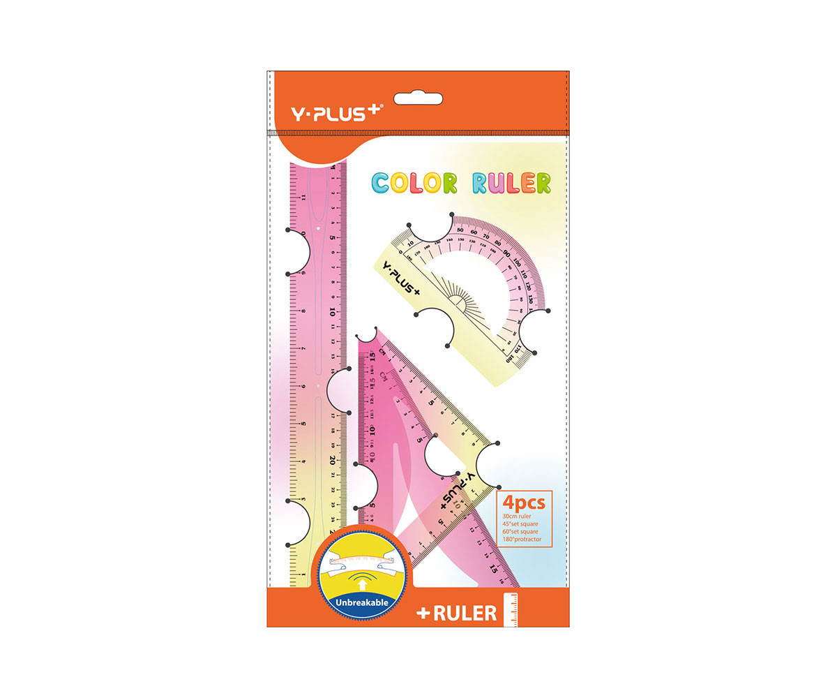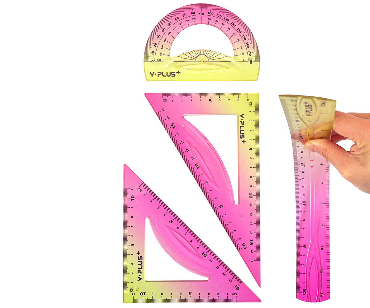 Y-Plus - Чертожен комплект 4 части, нечуплив, розов