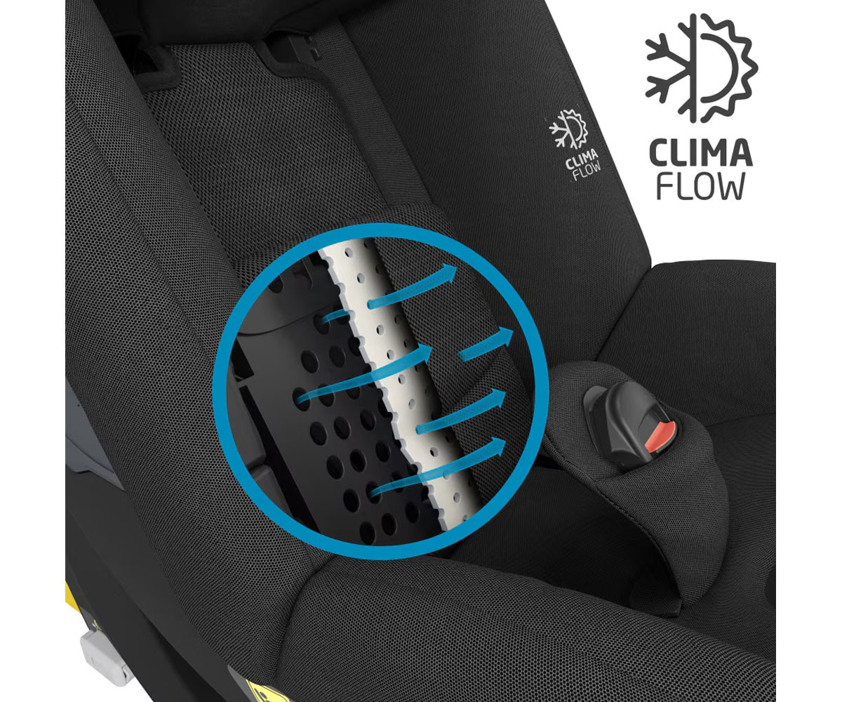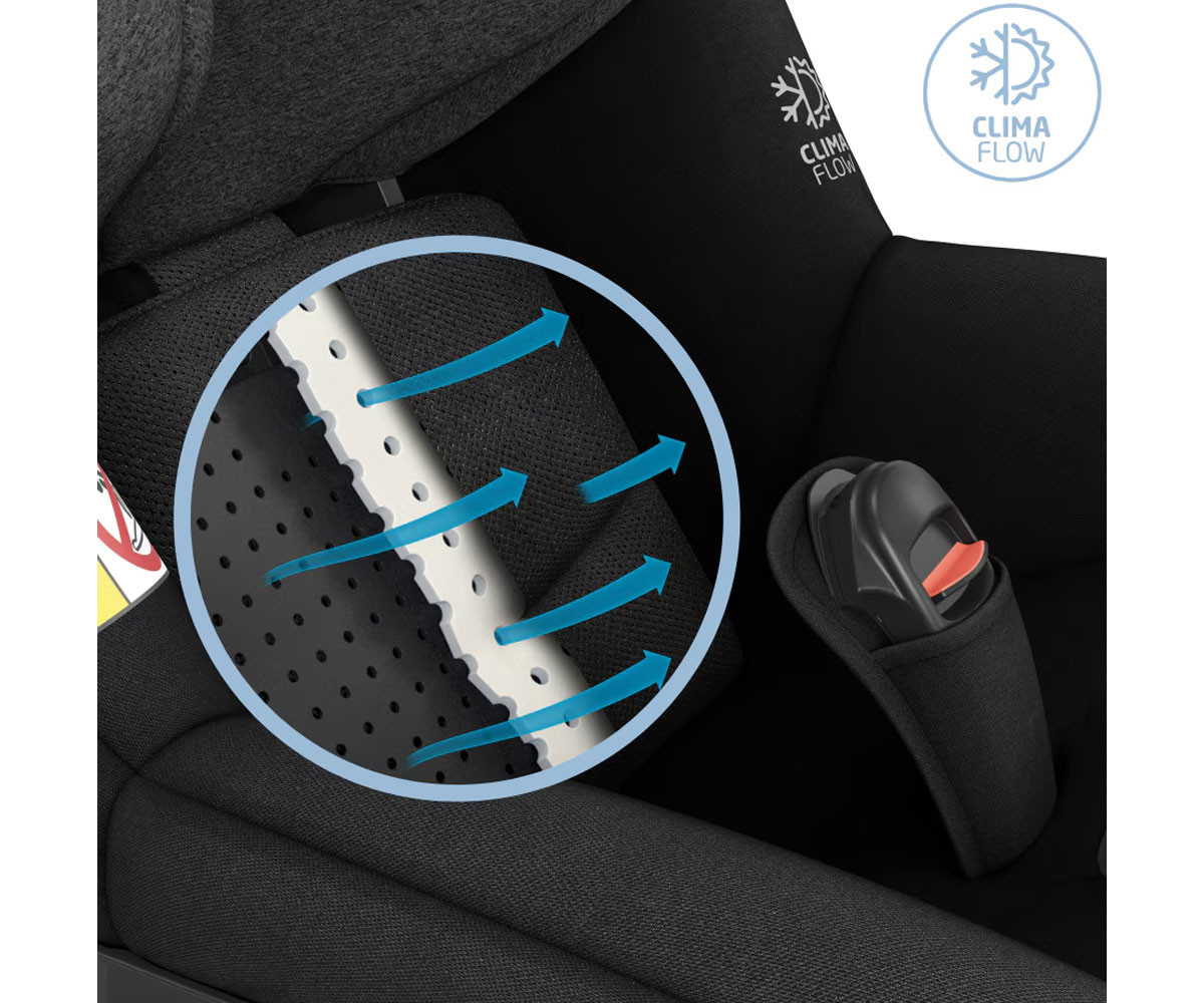 Въртящата се седалка за кола Mica Pro Eco осигурява повече комфорт от всяка друга Mica преди. Проектиран с подобрени ъгли на накланяне, той осигурява най-добрия в класа си комфорт при сън за вашето мъниче по време на пътуване. С по-големи панели ClimaFlow и дишащи тъкани за максимална циркулация на въздуха, вашето дете винаги ще остане при комфортна температура. С множество позиции на накланяне и допълнителна подплата, можете да сте спокойни, че вашето мъниче е винаги омекотено и се чъвства удобно в това столче за кола от раждането.
