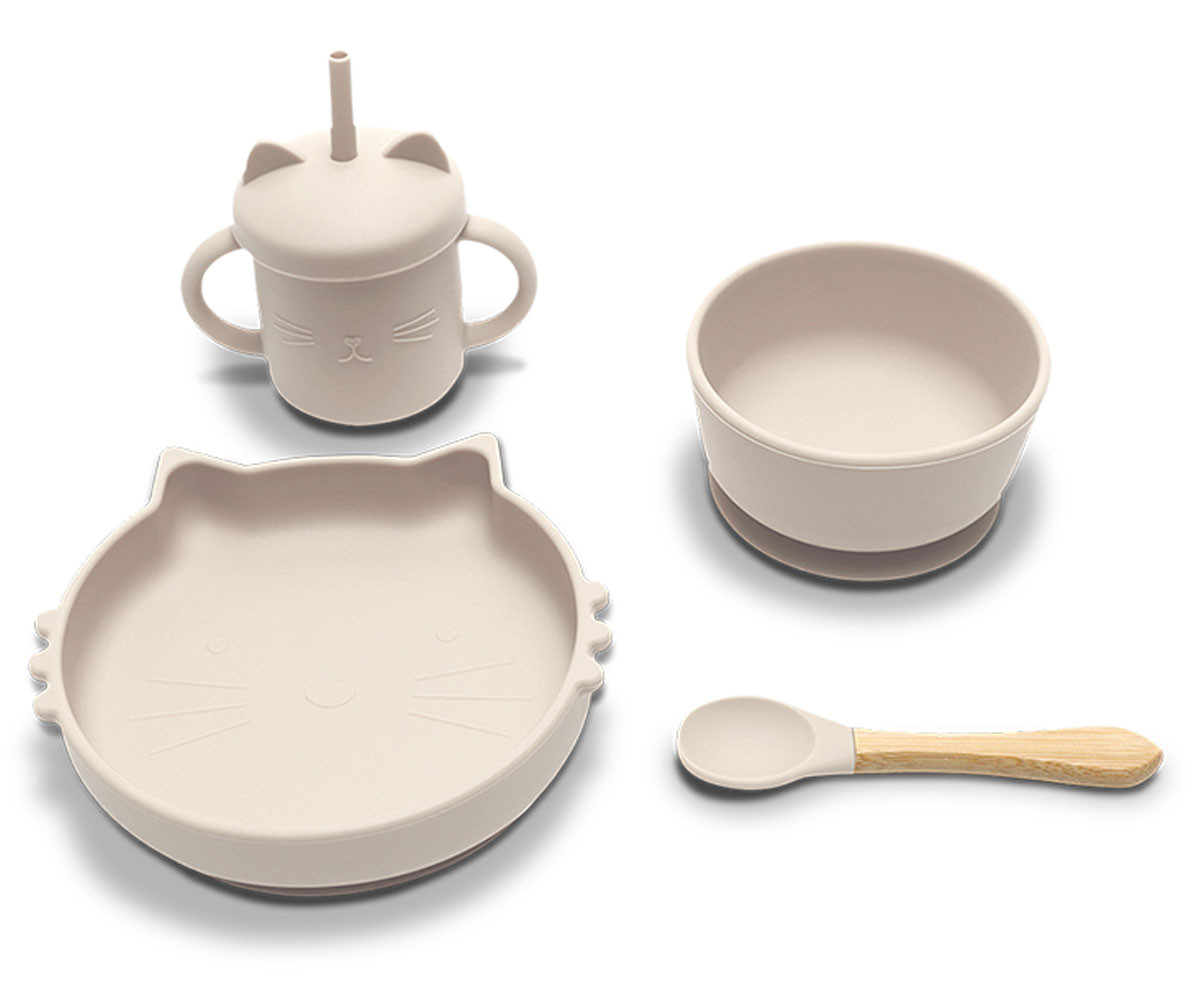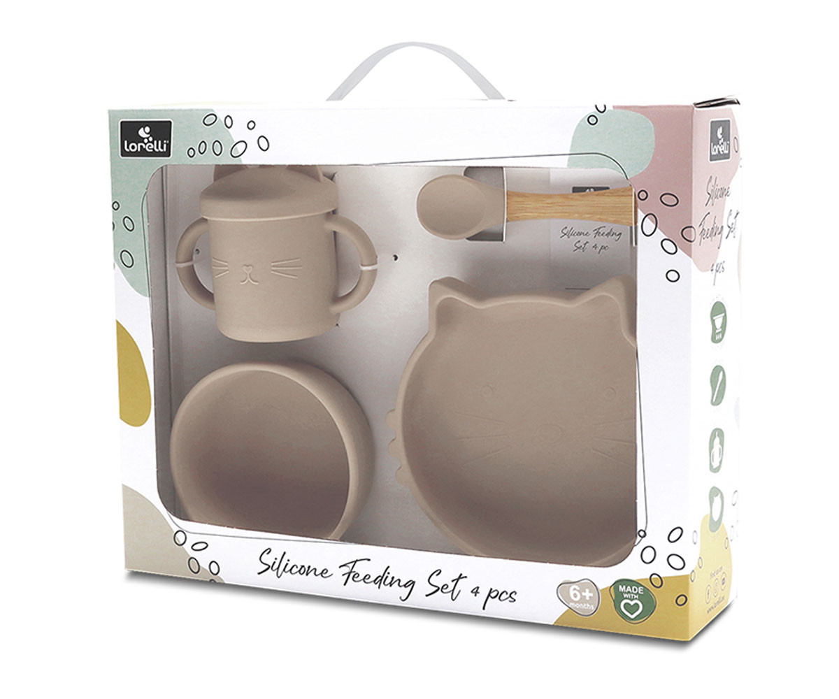 Lorelli - Силиконов комплект за хранене от 4 части, Natural beige