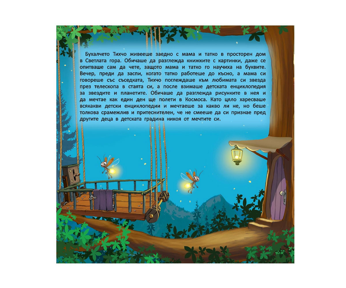 Бухалчето Тихчо опитва да преодолее своята срамежливост, защото му се струва, че всички освен него са по-смели, по-инициативни, по-щастливи. Един ден му се удава възможност да събере сили и да направи стъпка напред. Бухалчето Тихчо е много срамежливо дете. Не смее да взима участие и се притеснява да говори дори когато много му се иска. Копнее да играе и да се запознава с нови деца, но някак все не намира правилните думи, за да започне разговор. Книжките от поредицата „Горската детска градина“ разкриват пред детето под формата на приказка различни предизвикателства, проблеми и особености на характера. Героите в нея са деца, които попадат в ситуации, близки до реалните, за да може детето интуитивно да стигне до важни изводи и заключения. В края на всяка книжка са поместени три урока, които помагат на малчуганите да осмислят поуките от историята, картинки за оцветяване, гатанки и весели задачки, които развиват наблюдателността и концентрацията.
