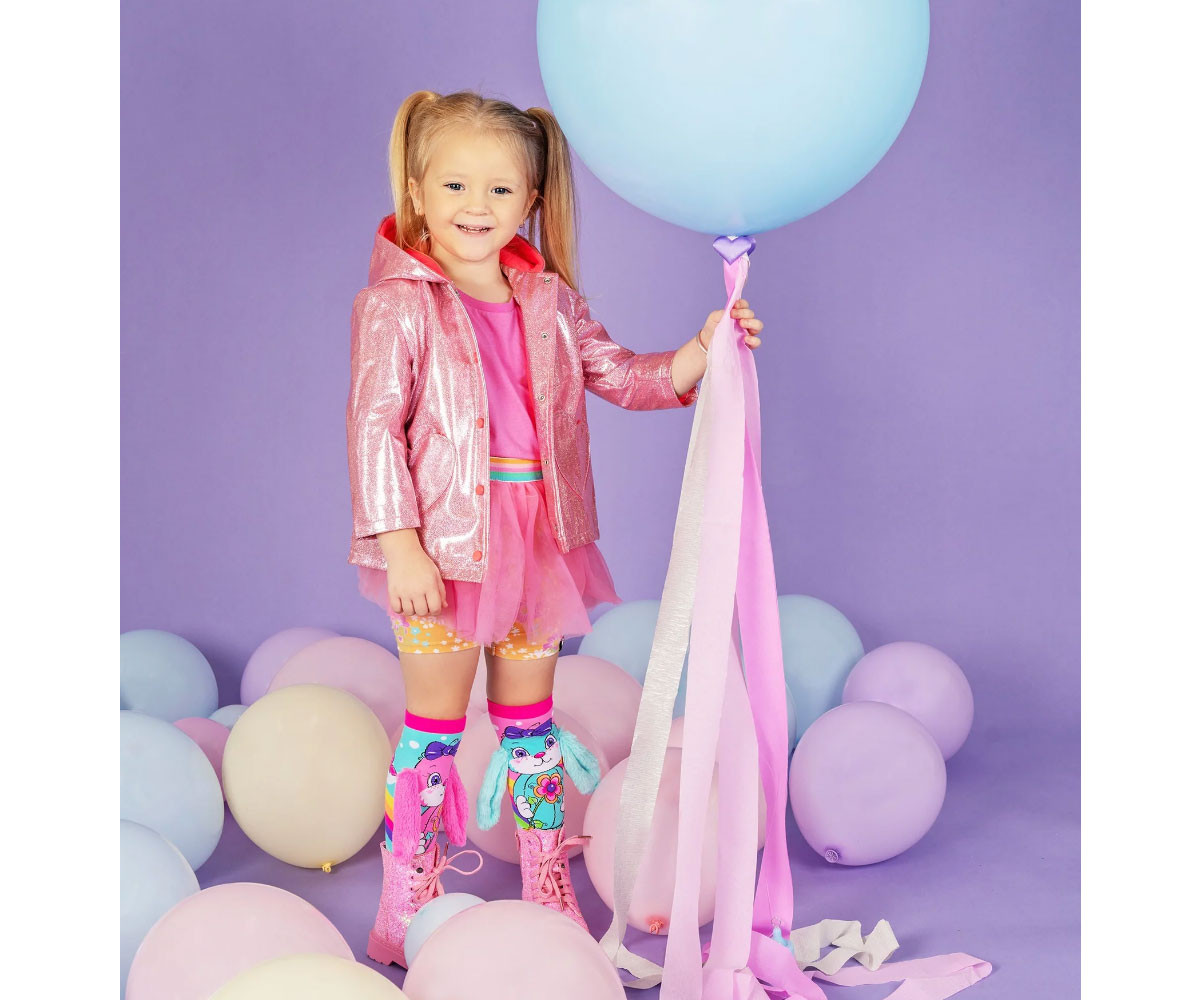 Когато купуваш чорапи MADMIA, ти купуваш една по-забавна, уверена и цветна версия на себе си! Тези щури дълги чорапи те насърчават да развихриш креативността си и да се откроиш от тълпата. С гордост създадена в Австралия, MADMIA е забавна марка за щури чорапи, която създава цветни дизайни с цел да вдъхновява креативност и себеизразяване. С мотото „Защо да се вписваш, когато си роден да се открояваш?“ Мисията на MADMIA е да дадат на децата и на младите по сърце разрешение да изразяват себе си и да бъдат деца толкова дълго, колкото желаят. В света на MADMIA, еднаквите и обикновени чорапи са скучни, а съчетаването на различни шарки и ярки цветове е супер готино! Затова MADMIA започна с дизайн на несъответстващи щури чорапи във всеки чифт – така че да можеш да ги комбинираш по твой собствен, креативен начин. MADMIA ви насърчава да бъдете толкова несъответстващи, колкото желаете, да развихрите креативността си и да не се страхувате да се откроите от тълпата. Тези ярки и смели забавни високи чорапи до коляното в страхотен дизайн предизвикват забавлението, така че да блестите ярко като звезда! Една „доза“ от щурите чорапи на MADMIA ти носи дълготрайна енергия, страхотна визия и комфорт за краката!