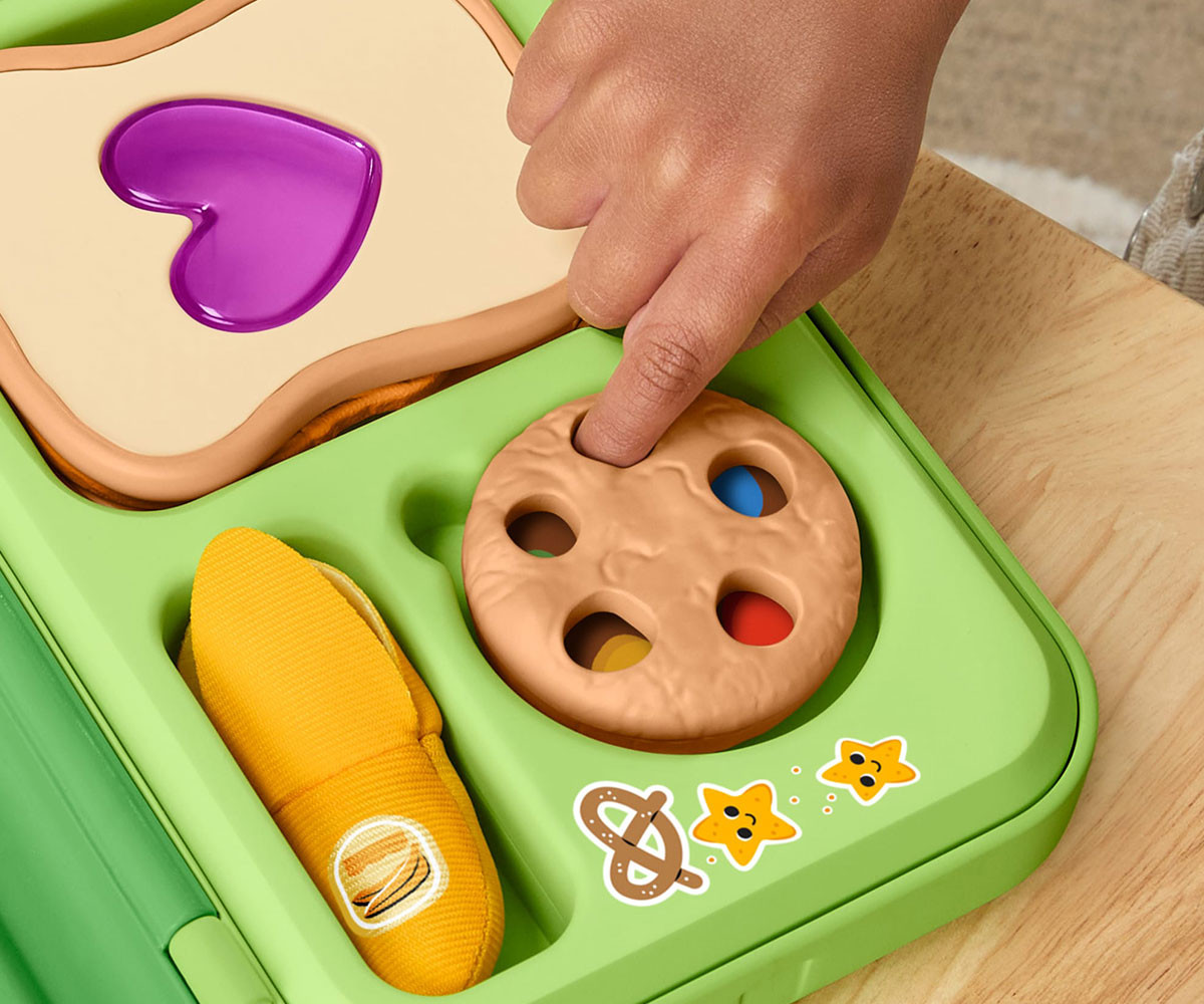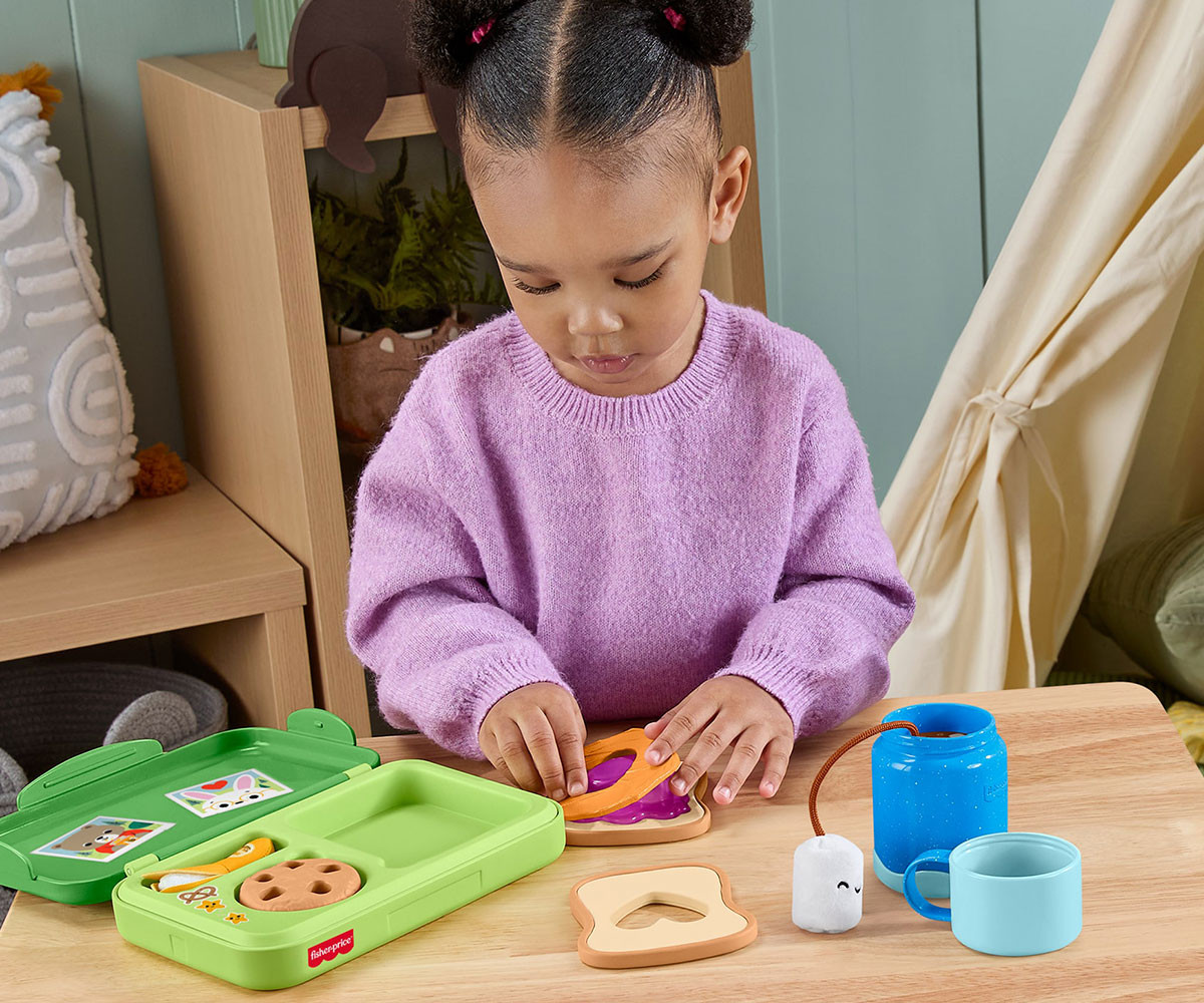 Децата могат да се подготвят за вкусен ден на забавна ролева игра с комплекта Играчка кутия за обяд от Fisher-Price. Този комплект с къмпинг тематика включва преносима кутия за обяд и 8 аксесоара, с които малчуганите могат да сортират, подреждат и прибират вътре. Включени са 6 отделни хранителни елемента и чаша за напитка за път с подвижен капак. Потърсете и други играчки от серията Friendship Forest за още повече забавления на открито! Цветовете и декорациите може да варират.