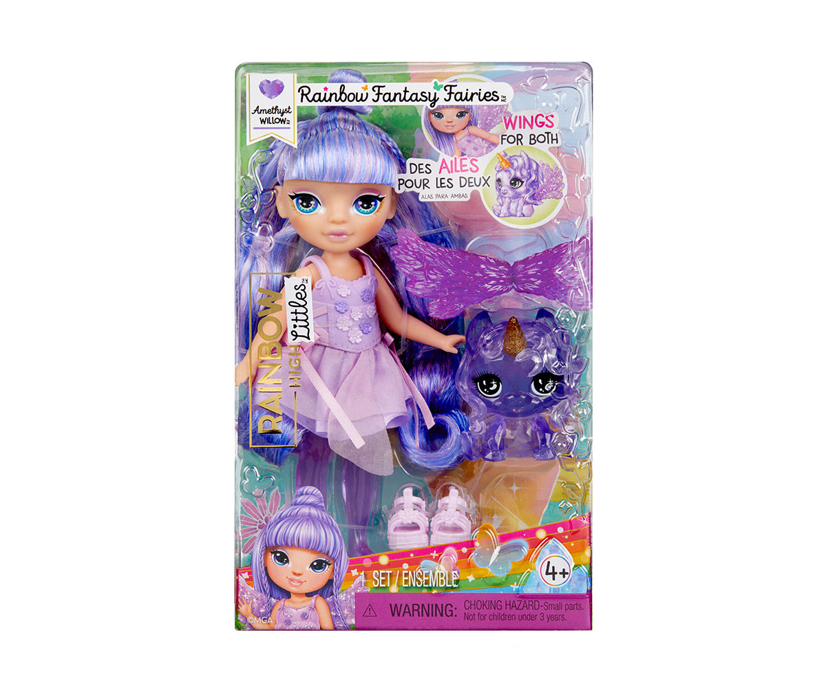 Магически фентъзи феи с разменяеми крила! Влез в омагьосан свят, в който Rainbow High Littles се превръщат във вълшебни феи! Феята Аметист - лилавата фентъзи фея вдъхва живот на магията и въображението със своя впечатляващ спътник - Пегас.