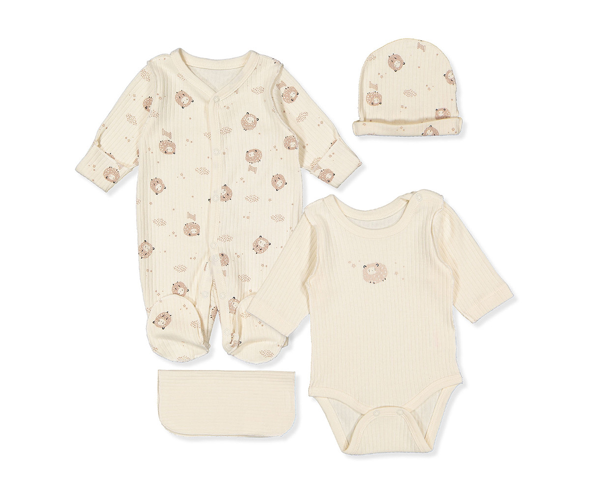 Bebetto - Комплект за изписване 4 части Organic Little Lamb Z1033, унисекс, недоносени