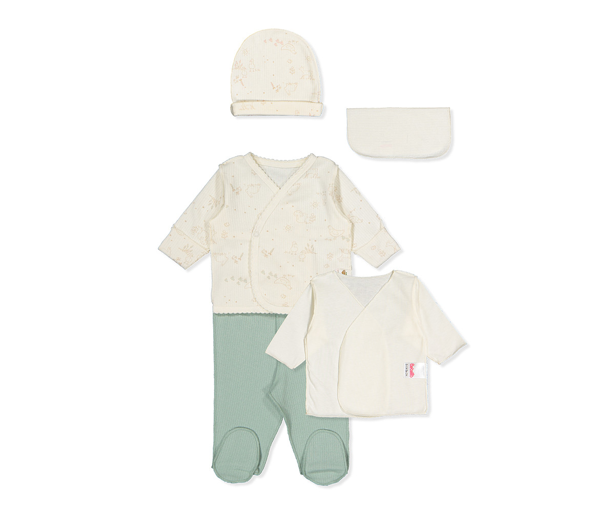 - Name: Bebetto Z990 - Organic Interlock Premature Layette Set of 5 (Organic Farm), PREMATURE, mint
