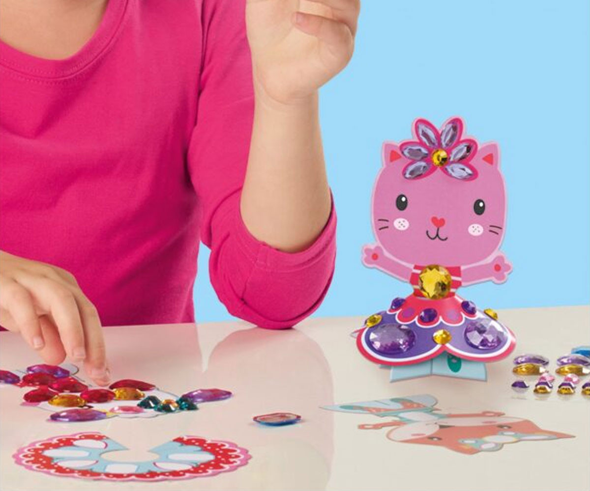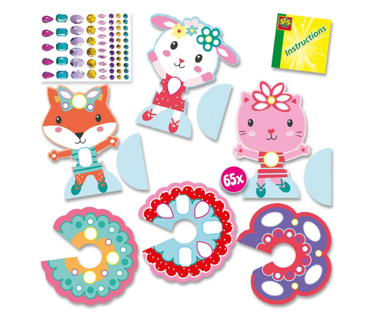 - 65 големи самозалепващи се диамантени стикера в ярки цветове;