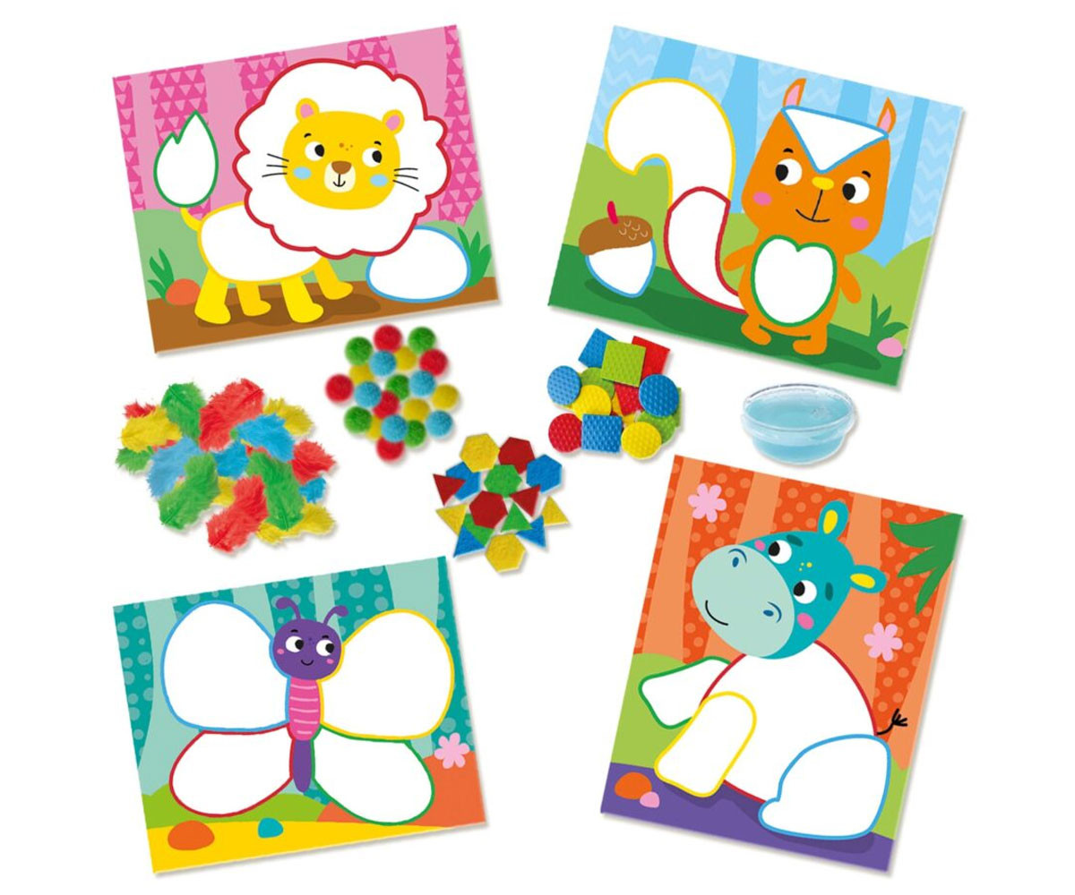 Открий „Монтесори – Сортиране на цветове и материали“ – забавно и образователно занимание за деца над 3 години! С този сензорен комплект децата се учат да различават цветове, форми и текстури, като едновременно с това развиват фина моторика и сетивно възприятие. Комплектът включва разнообразни материали за лепене и сортиране, както и лепило за нанасяне с пръсти, което е идеално за малки ръчички.