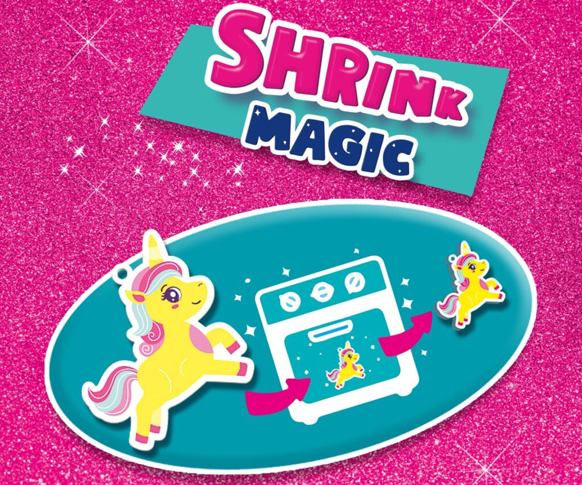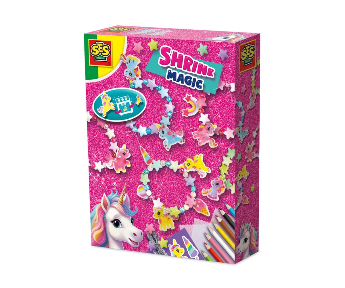 Създай свои магически гривни с комплекта „Еднорози – Гривни с талисмани“! С този креативен комплект можеш сам да изработиш талисмани с еднорози от специално свиваемо фолио. Просто очертай шаблоните от инструкциите с цветни моливи и ги оцвети както пожелаеш. След изпичане във фурна, талисманите се смаляват, цветовете стават по-ярки, а материалът – по-здрав. След това нанижи талисманите заедно със звездички и перлени мъниста върху сребърния еластичен конец, за да създадеш 5 уникални и красиви гривни!